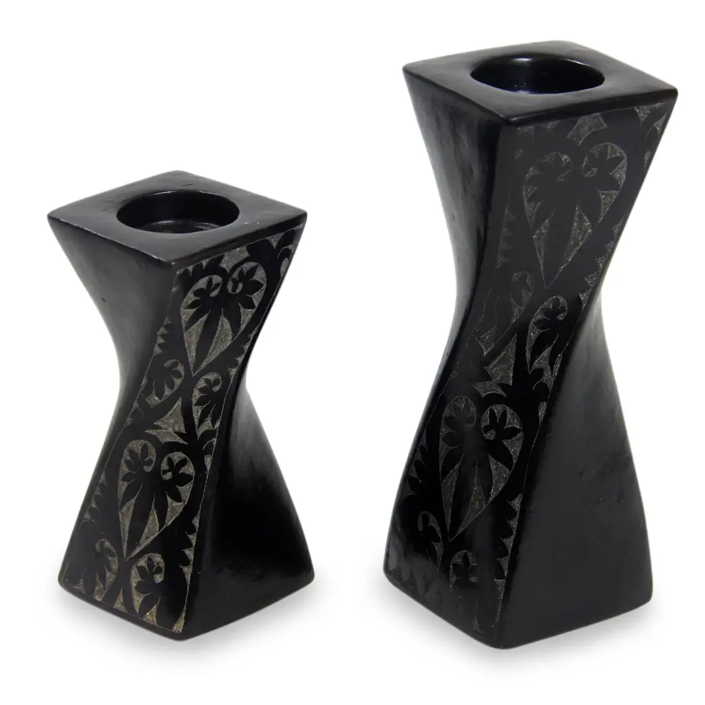 Artisan Crafted Black Ceramic Tealight Holders (Pair)- Lombok Goth