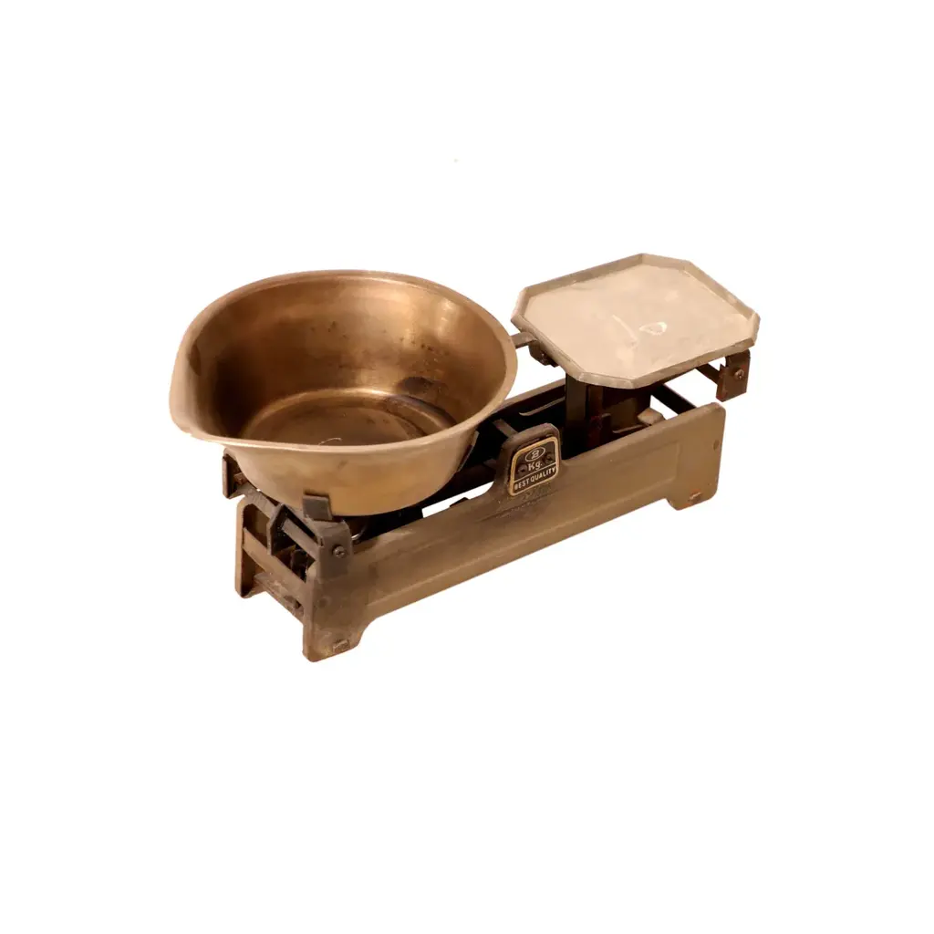 Cast in bronze, this artisanal scale makes a unique addition to any display. Style it as part of a kitchen vignette, or use it to add dimension to a bookshelf.