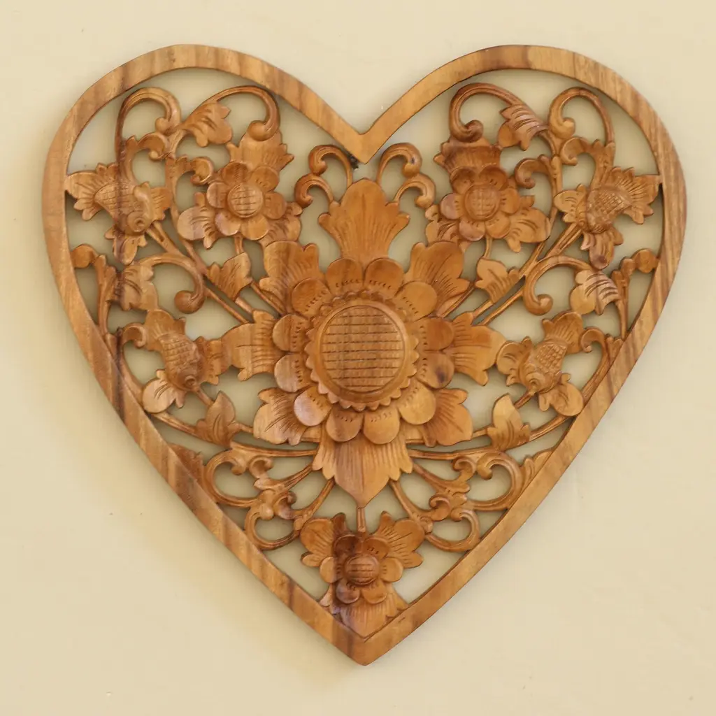 This petite relief panel is hand-carved in teak wood by the talented Kittiwannakul Family in Thailand. After carefully detailing each blossom and leaf, they give the piece a darkened, antiqued finish for the look of a vintage treasure.