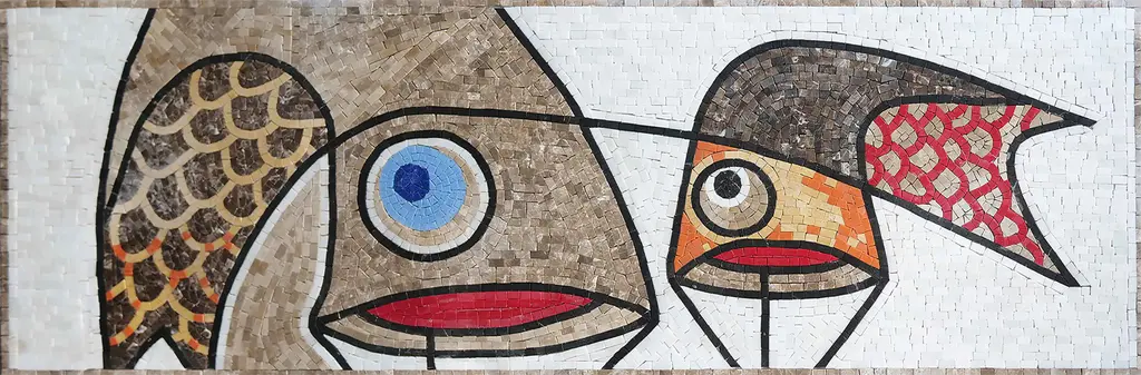 Dive into the world of artistic elegance with our "Artistic Fish - Abstract Mosaic." This stunning piece features a captivating arrangement of neutral-colored marble stones, expertly crafted to create a mesmerizing fish design that can seamlessly enhance any space. The intricate pattern is accented with bold splashes of vibrant orange, alongside striking dashes of blue and red, bringing a dynamic visual appeal that is both eye-catching and sophisticated.Each tile is meticulously selected for its unique texture and color, resulting in a harmonious blend that invokes a sense of tranquility and creativity. Whether placed in your living room, office, or outdoor patio, this abstract mosaic transforms any setting into an artistic haven. Its versatile design makes it a perfect fit for contemporary and traditional aesthetics, providing an artist's touch that resonates with warmth and inspiration.Not just a decorative piece, the "Artistic Fish - Abstract Mosaic" serves as a conversation starter, inviting admiration and intrigue from guests and family alike. It stands as a testament to the beauty of abstract art, offering an opportunity for self-expression in your home decor. Crafted for durability and style, this mosaic is suitable for indoor and outdoor environments, ensuring it remains a focal point for years to come.Elevate your space with the charm and elegance of our "Artistic Fish - Abstract Mosaic." Embrace the beauty of art in everyday life and make a statement that reflects your unique style and personality. Transform your home into a gallery of inspiration – order yours today!