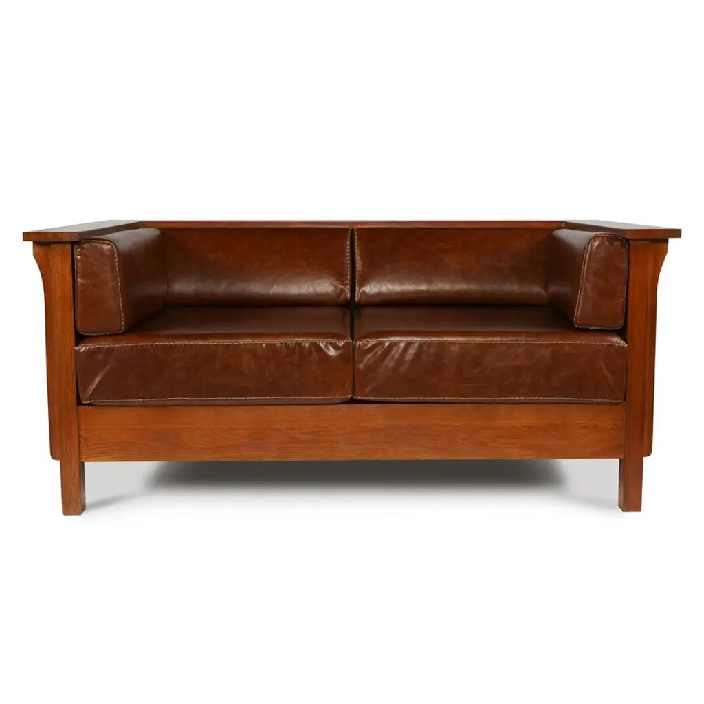 Arts And Crafts / Craftsman Cubic Panel Side Love Seat - Russet Brown Leather (Rb2) - Dark Brown