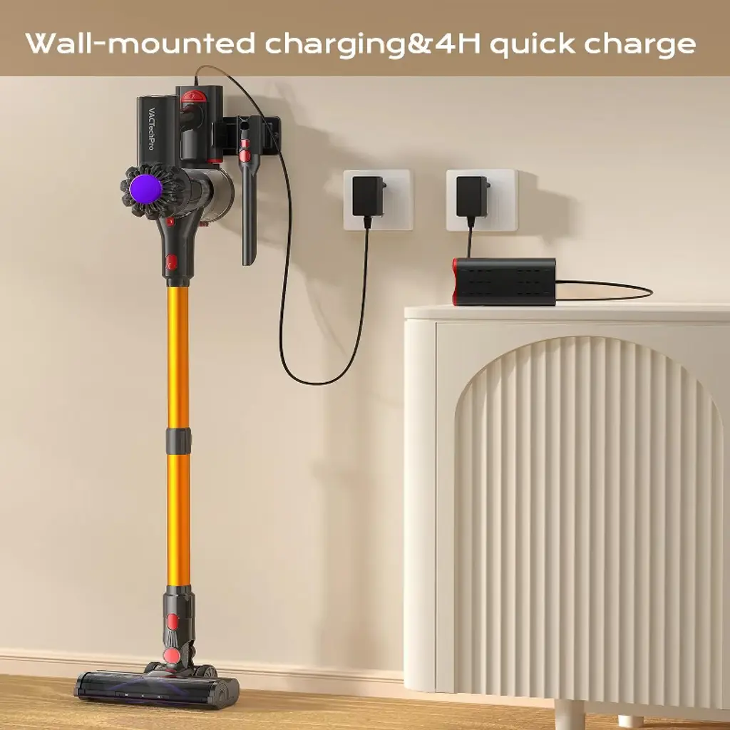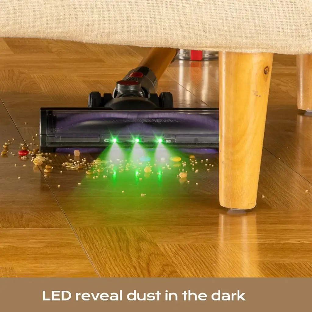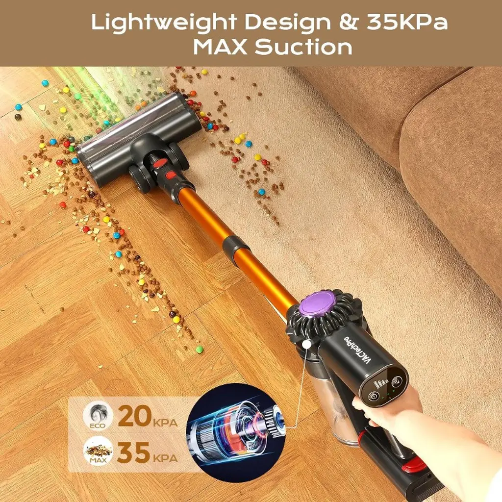 Experience the joy of effortless and efficient whole-house cleaning with our intelligent cordless vacuum cleaner. It effortlessly tackles a variety of debris, such as candy, cookies, pet food crumbs, pet hair, and fabric fibers, saving you time and energy.Powerful brushless motor and an impressive 35KPa suction power, it effortlessly picks up all types of debris and deeply embedded dirt. Smart sensors automatically adjust suction power based on the floor type. The all-in-one color touch screen allows for easy suction power selection and provides real-time information, dust cup status, and filter maintenance. With a versatile rotating electric brush head, floor lights, and anti-winding roller, it effectively captures hair and debris on any surface. The spacious 1.5L canister ensures uninterrupted cleaning for your entire home.