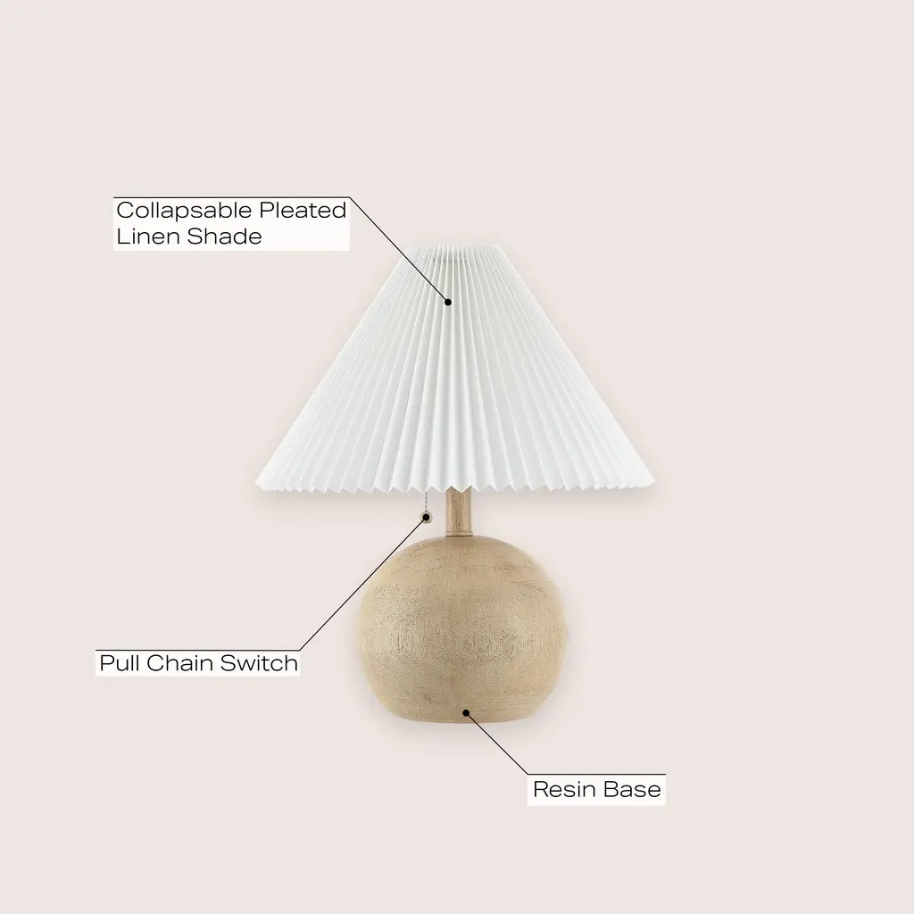 Arvid 17.25" Coastal Scandinavian Resin/iron Sphere Led Table Lamp With Pleated Shade And Pull Chain, By Jonathan Y - Beige Wood Finish