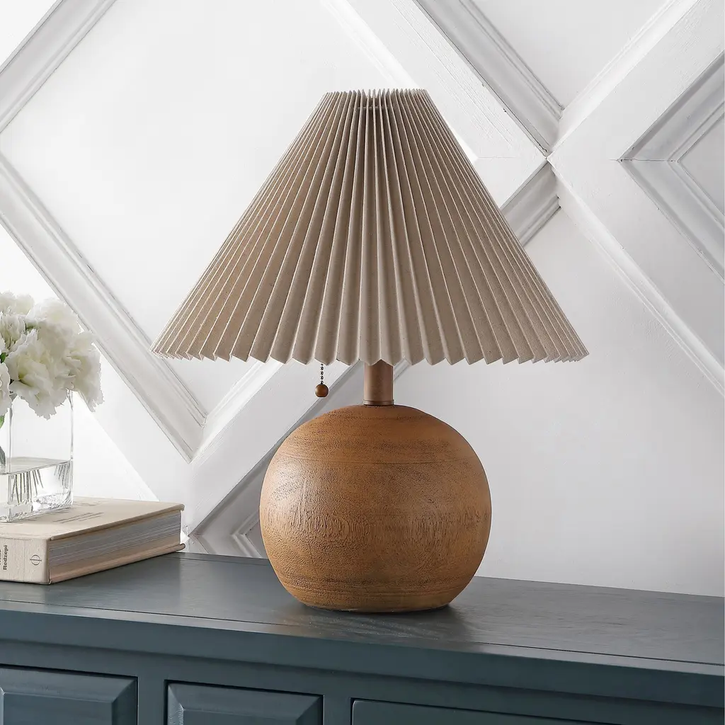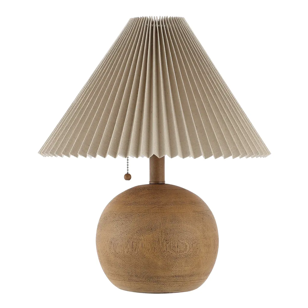 Arvid 17.25" Coastal Scandinavian Resin/iron Sphere Led Table Lamp With Pleated Shade And Pull Chain, By Jonathan Y - Brown Wood Finish
