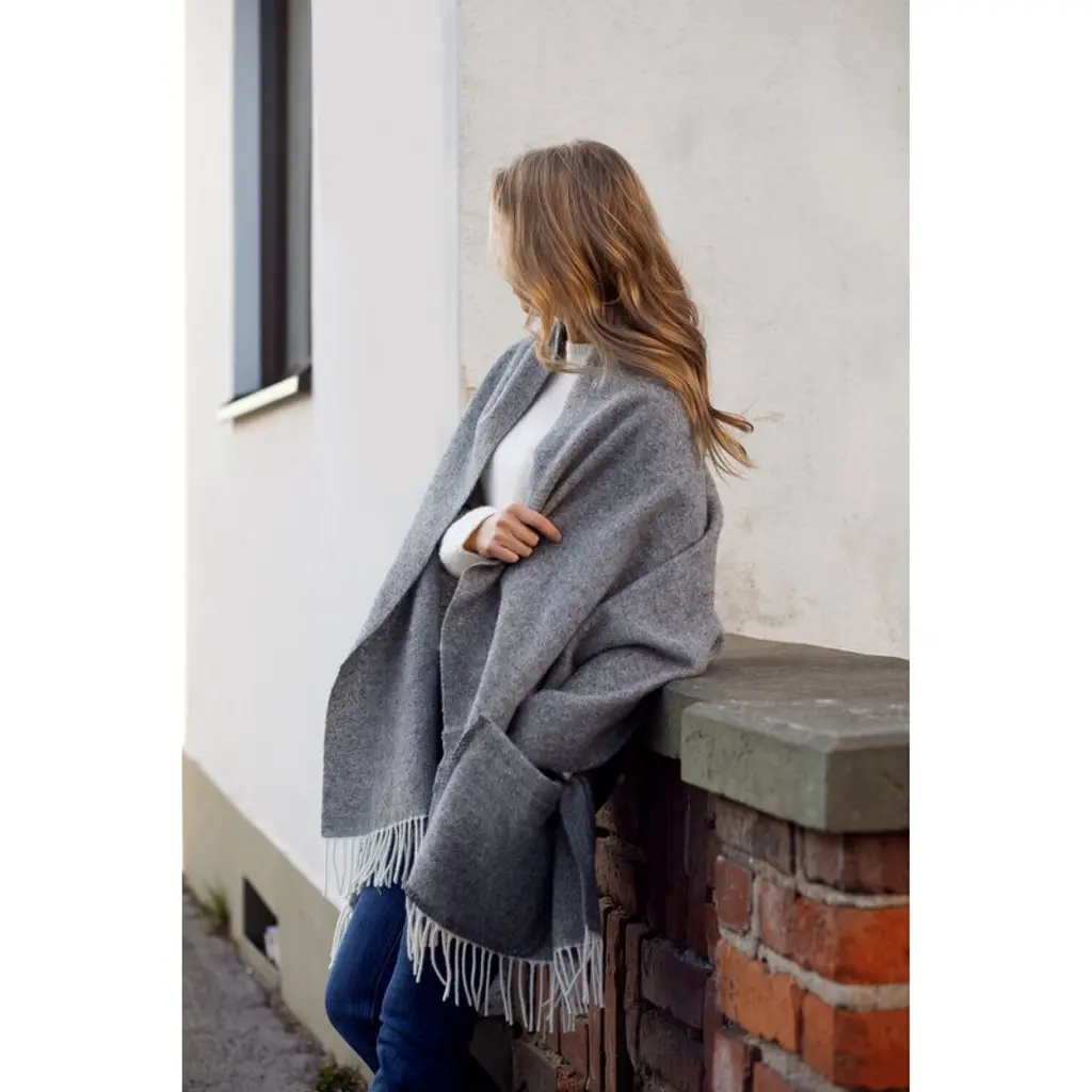 The Arvo pocket shawl by Lapuan Kankurit wraps you in cozy warmth, whether you're relaxing at home, enjoying time on the terrace, or spending time outdoors. Made from 100% wool, this generously sized scarf is colored in calming natural hues. Its large pockets are perfect for warming your hands or carrying essentials like your phone, keys, and other small items. The stylish pocket shawl is also an elegant way to stay warm at more formal events. The Arvo collection is a tribute to Finnish craftsmanship and Finnsheep, a sheep breed native to Finland The mulesing-free products are crafted from locally sourced Finnsheep wool, along with certified Wool Integrity NZ wool. Designed by Lapuan Kankurit’s in-house team, each piece is woven at the Lapuan Kankurit mill in Finland.