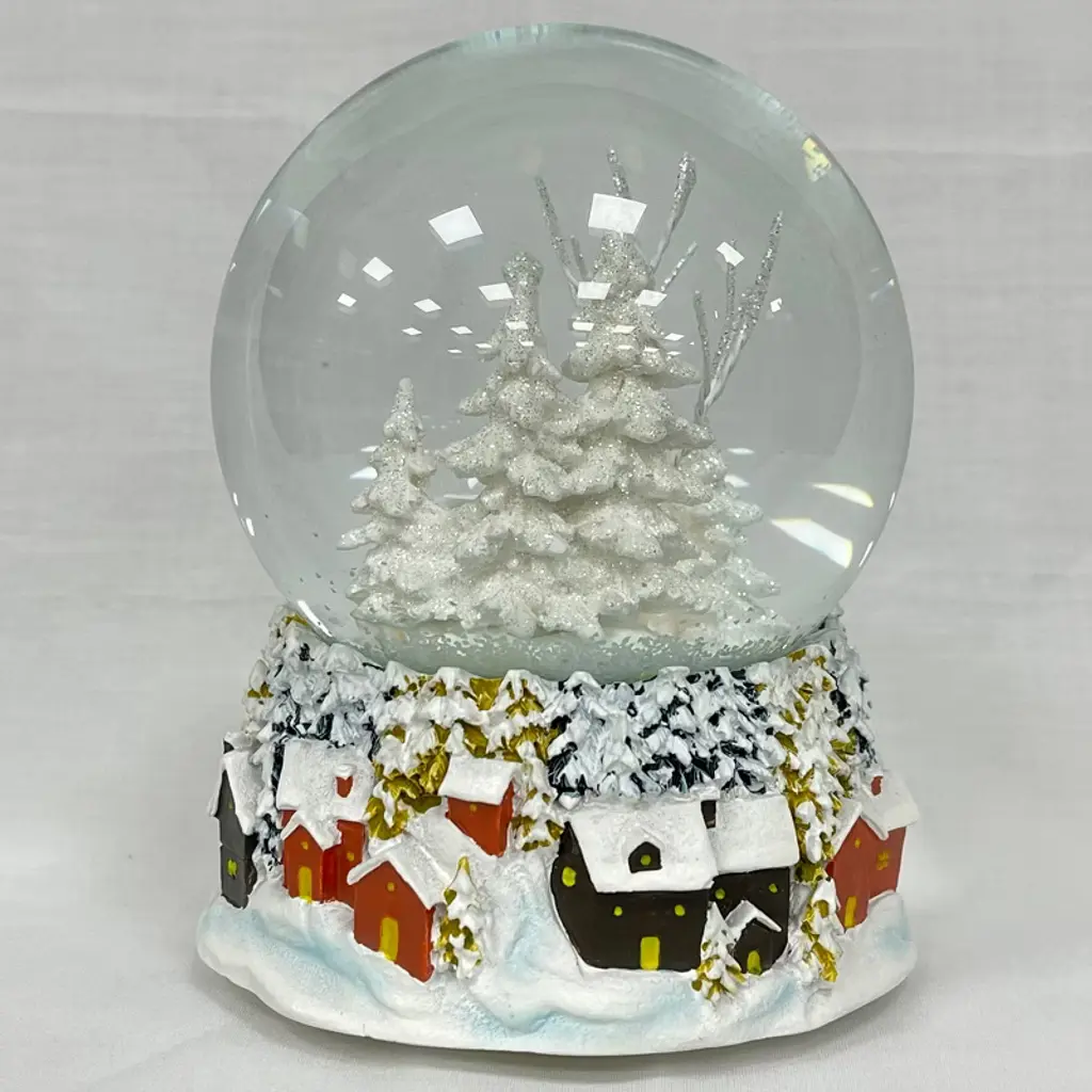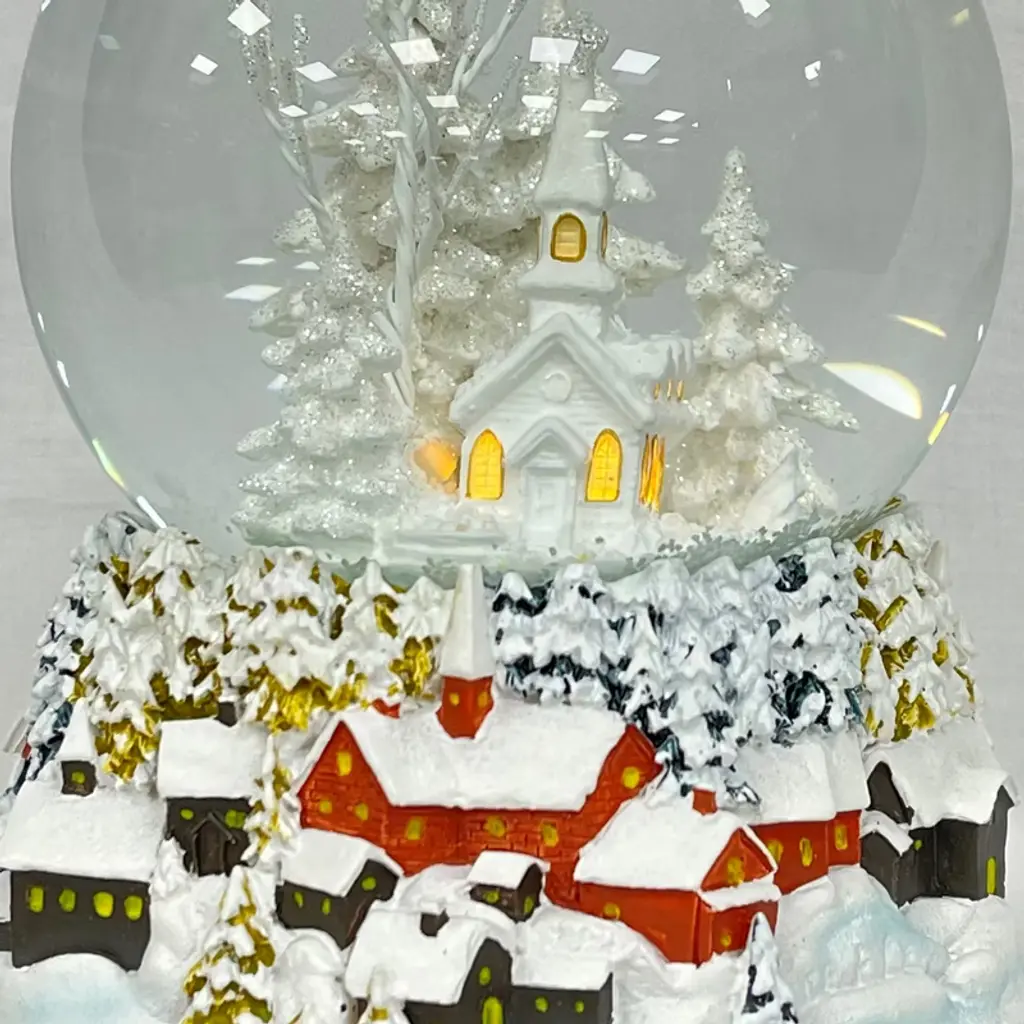 Enjoy the sight of a Wintery landscape accompanied by cheerful instrumental music with this Snow Ball Music Decoration. It has an eye-catching design with vivid images, creating a beautiful and dreamy Wintery atmosphere. This music snow globe is the perfect decoration to enliven your space this Fall, winter and holiday season. It is also a great gift for those who collect snow globes, family, friends and co workers. Each contains finely detailed polyresin figures encased in water-filled clear glass. Give them a gentle shake to set the mood with a mesmerizing swirl of "snow". The sturdy resin base features a snowy village scene which future enhances it's charm. Under the base is a high-quality, wind-up Sankyo musical movement that plays a classical tune. There is an off/on switch to control the light feature at the bottom of the base.