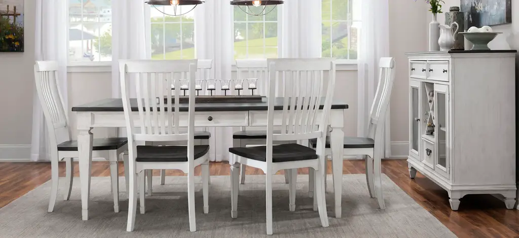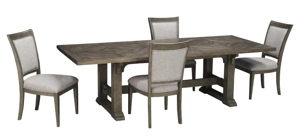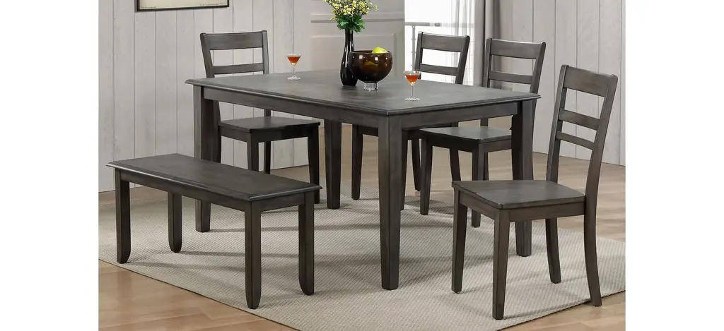 Make your dining experience the best it can be with the Ashford 5-pc. dining set. Its gray wood tone lends a chic look that's still classic enough for traditional family meals. Plus, upholstered seats provide plenty of comfort for conversations at the table. Matching Table Protector