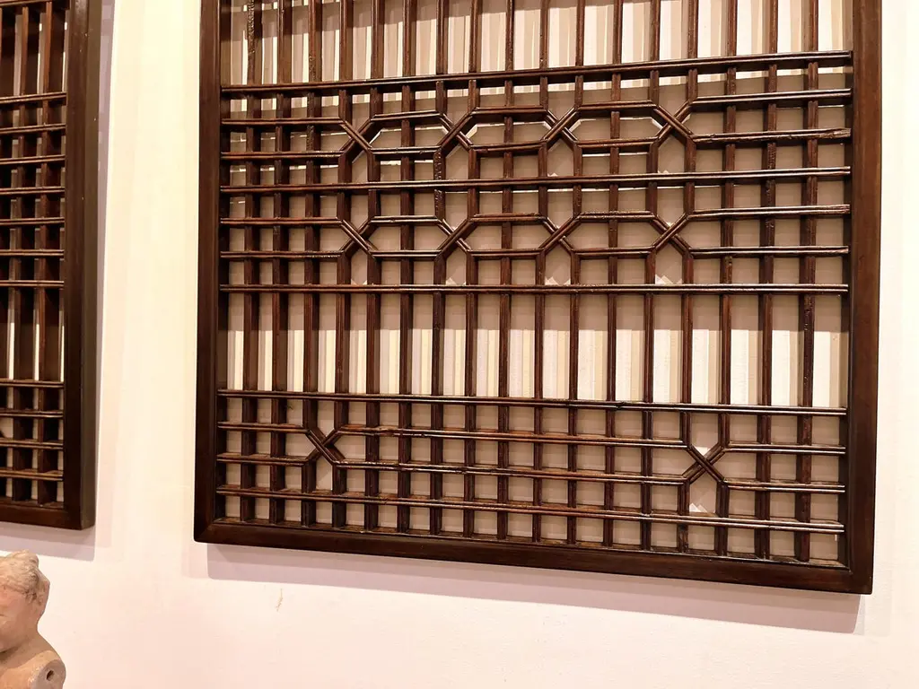 Asian window panels with geometric shapes design. All constructed with joinery techniques.Photos are shown three window panels and can sell all three window panels once or can sell a single window panel individually. Price here is shown for each individual window panel. Please choose quantity during the check out.
