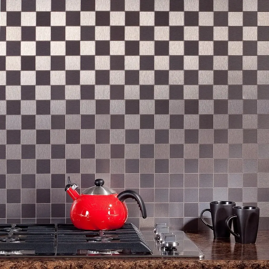 Get the look of a high-end, designer kitchen at a fraction of the cost with matted aspect. These easy-to-use, peel-and-stick matted sheets install easily while giving you the look of a custom backsplash and can be used in multiple applications including backsplashes, walls, cabinets, toe-kicks, details, accents and more. Aspect matted sheets are made of double-sided aluminum with polymer core offering lasting strength and durability. One (1) package includes 3 sheets for 1-square Feet of coverage. Samples are one (1) 3x6-inch tile. Samples are portion of matted sheet and will not match up for installation.Sample is a portion of matted sheet and will not match up for installation.' Dimensions: 12 inches x 4 inches x .125 inchesMaterial: MetalAssembly: Assembly RequiredColor: Brushed StainlessSamples are not returnableIf the quantity ordered is over 150 lbs, the order will ship via freight carrier and longer shipping timeframes are to be expected. Each line item within an order will be selected from a single dye lot (color) and caliber (size), but multiple orders can result in receiving multiple dye lots and/or calibers. Please ensure that all tile for a project is obtained within one order.