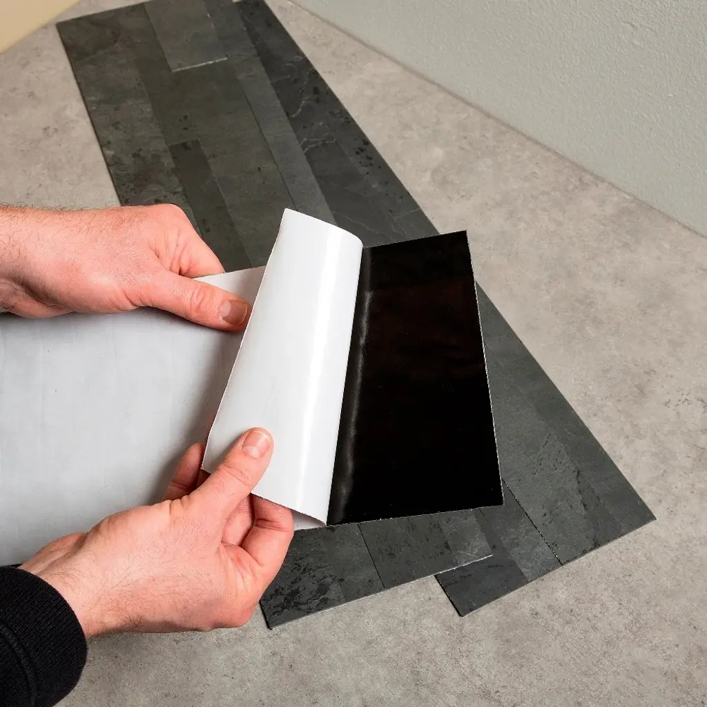 Transform your kitchen with ease using the Aspect 6 x 24-inch Charcoal Slate Peel and Stick Stone Backsplash. This flexible and lightweight tile product is designed to replicate the look of real stone. The peel-and-stick adhesive installation method eliminates the need for mortar or grout, saving you time and money. This dark matte-gray backsplash color is perfect for coordinating with black, silver, white, or brightly colored appliances. The material is easily cut with tin snips or shears, ensuring a simple installation process. Experience the unique character of real stone with this Aspect Stone backsplash.Features:Note: