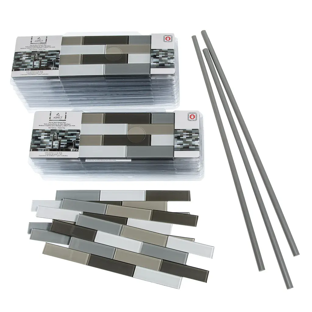 Elevate your kitchen's aesthetic with Aspect Glass 3x6-inch Tile in Frost. These tiles are made from 100% recyclable materials, making them an eco-friendly option. With a peel and stick application, you won't need to hire a tile installer, and additional adhesive can be used for added security. These tiles are versatile and can be used for backsplashes, walls, cabinets, accents, and more. Cleaning is a breeze with soapy water or glass cleaner, saving you time and effort.Features: