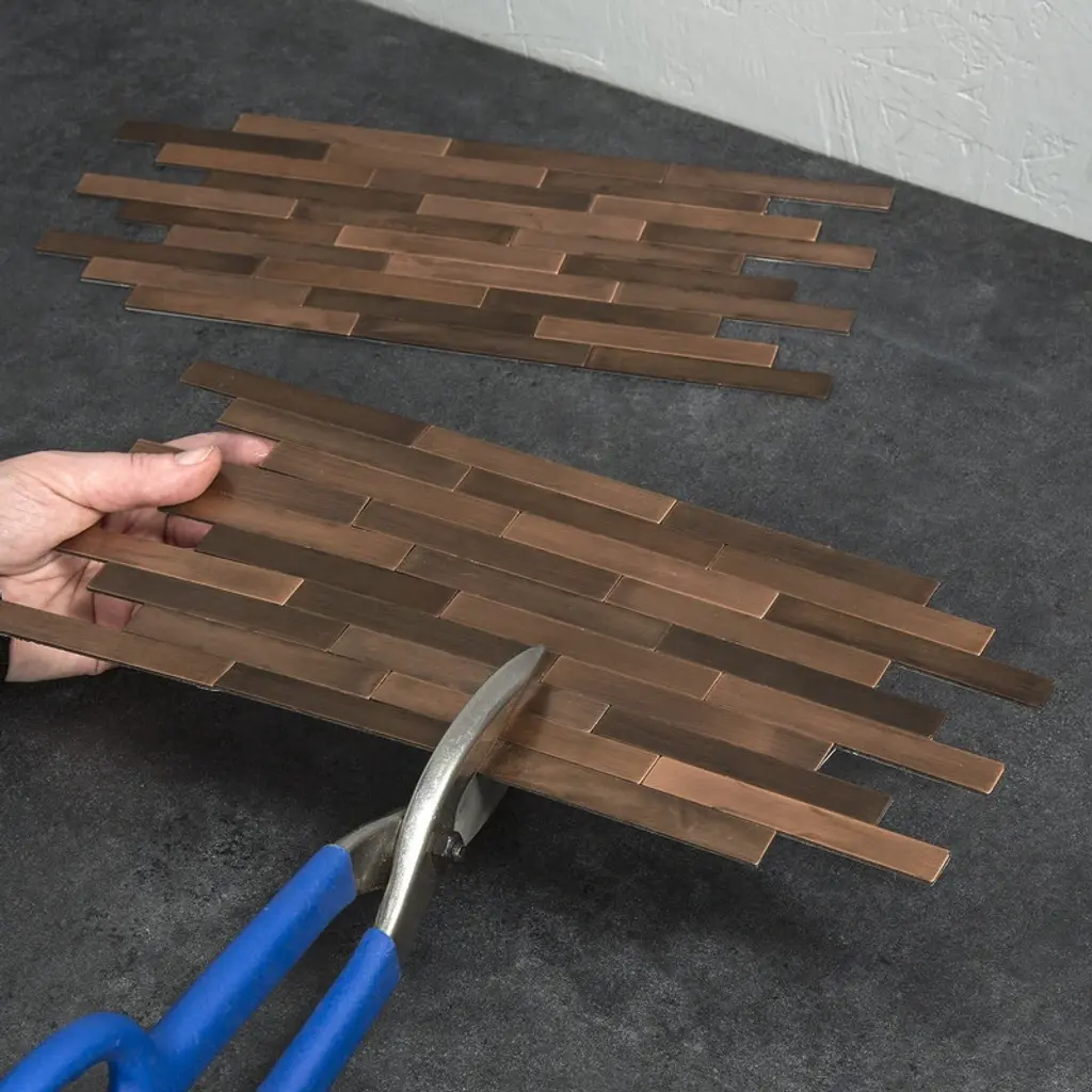Aspect Peel & Stick Distressed Mini Metal panels are the simple, DIY way to add the aged look of metal to your walls without having to hire a contractor. These mosaic-style panels are made of real metal and are available in beautiful colors to add depth and character to any design scheme. Simply peel off adhesive backing and stick to your wall. Aspect Distressed Mini Metal is perfect for any room in the house, so it's easy to cover full walls or use as an accent to complement all types of decor trends.