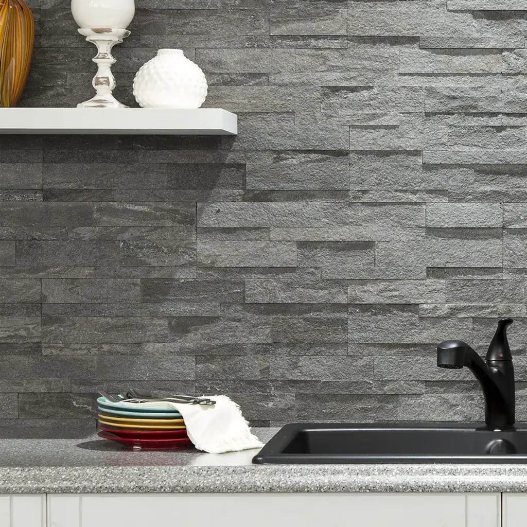 Aspect Peel And Stick Raised Stone Overlay Kitchen Backsplash Panel - One Panel - Raised Titanium