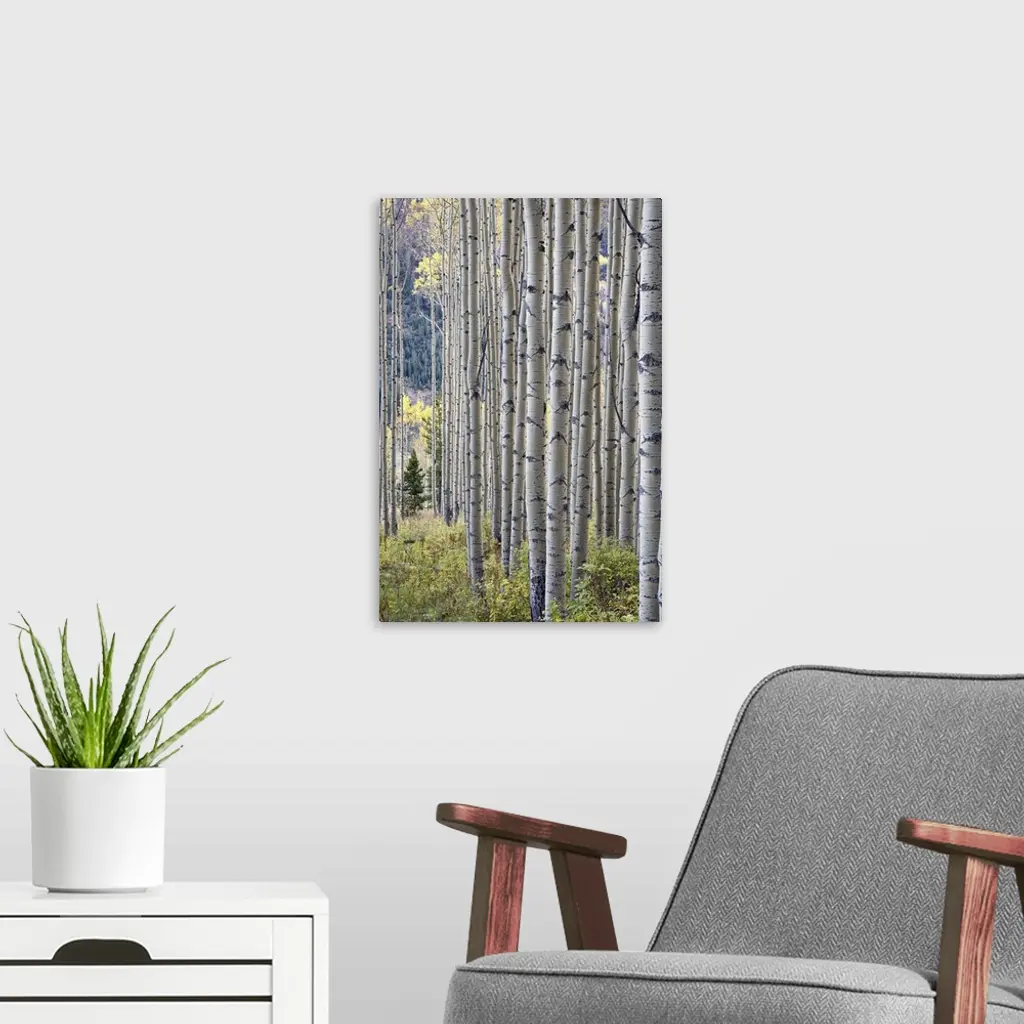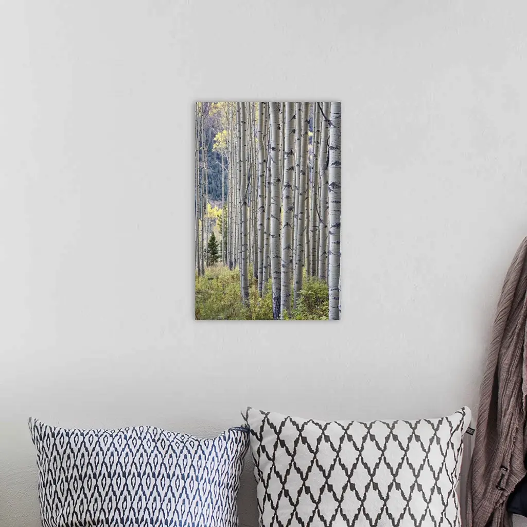 Aspen grove with early fall colors, Maroon Lake, Colorado wall art for home and office decor. Discover canvas art prints, photos, mural, big canvas art and framed wall art in GreatBigCanvas.com's varied collections.