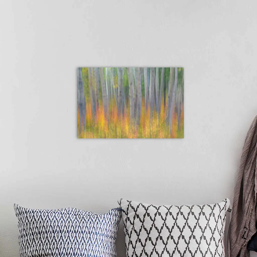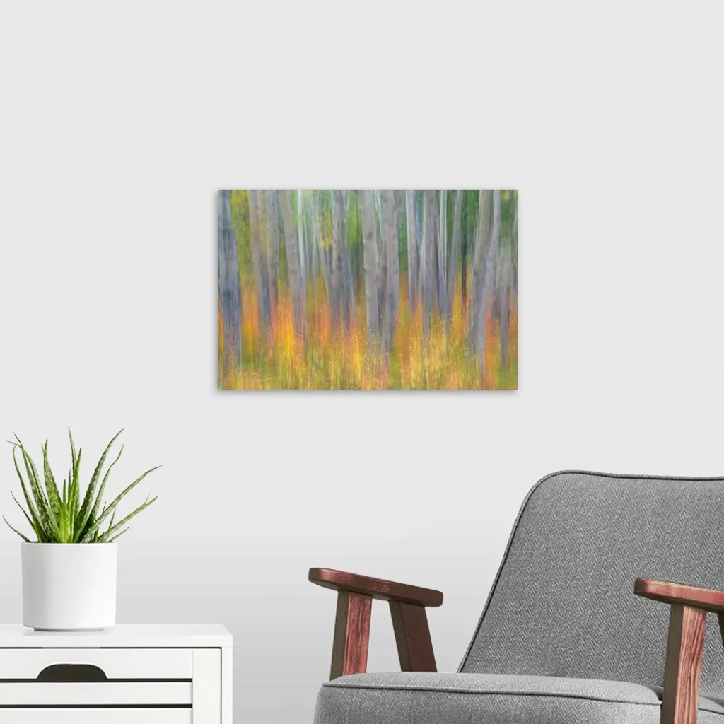 Abstract motion blur of aspen trees - Canada, Yukon Territory, Kluane National Park, Kathleen Lake.