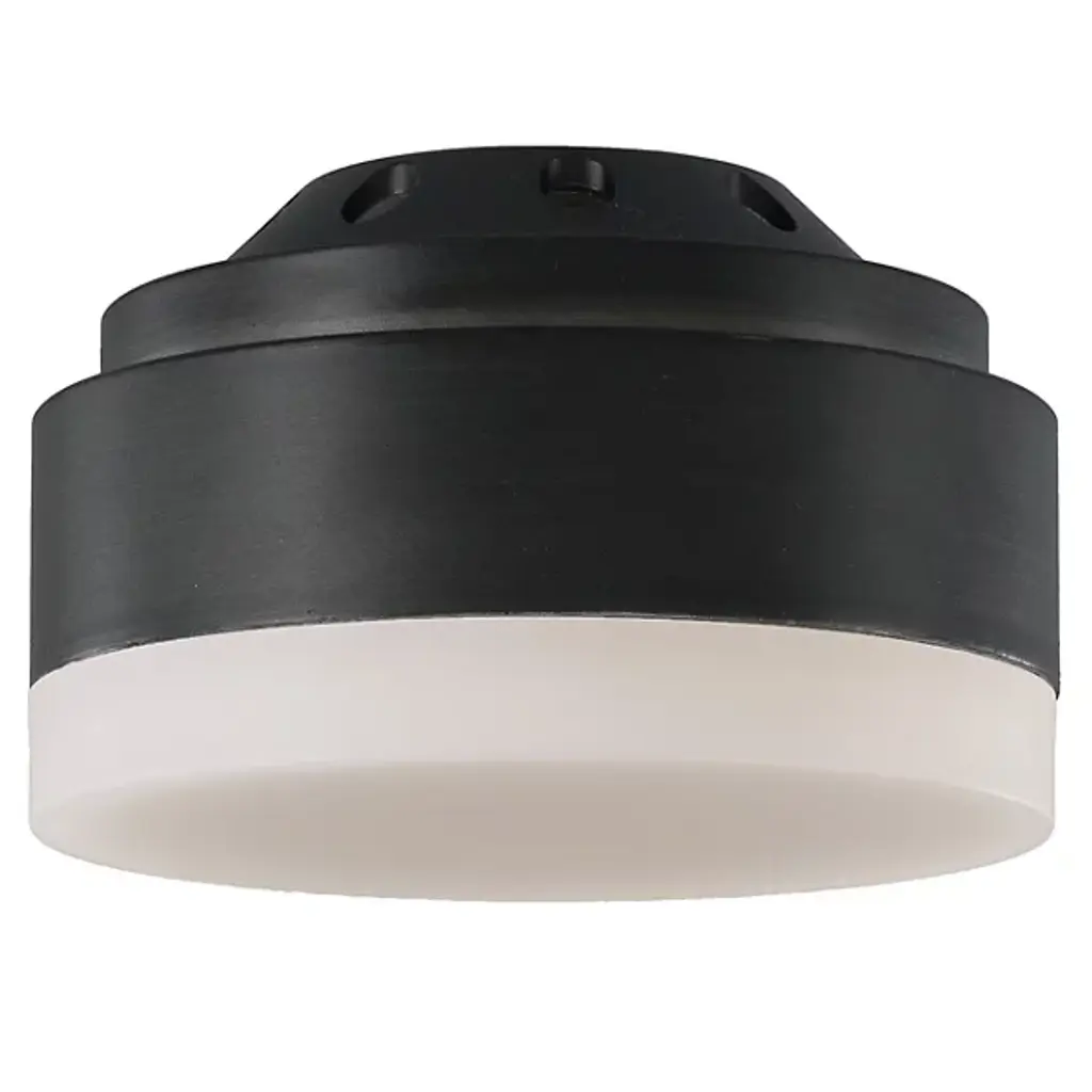 Bring light and life to your Aspen Fans with the smooth and stylish Aspen LED Light Kit from Visual Comfort Fan, formerly known as Monte Carlo, An elegant addition to the adaptable and energy-efficient aspen fan, its addition only enhances its specialty carved wood blades and clicks on and off with a flick of the included remote. A cylindrical housing protrudes slightly beneath the blade hub, setting potent LED lamping beneath a frosted acrylic disc diffuser that gentles its bright glare into a generous glow.