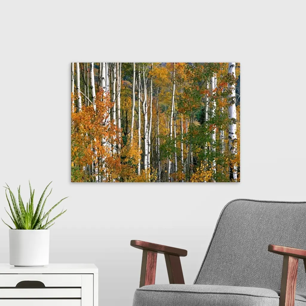 Aspen trees in fall colors, Lost Lake, Gunnison National Forest, Colorado wall art for home and office decor. Discover canvas art prints, photos, mural, big canvas art and framed wall art in GreatBigCanvas.com's varied collections.