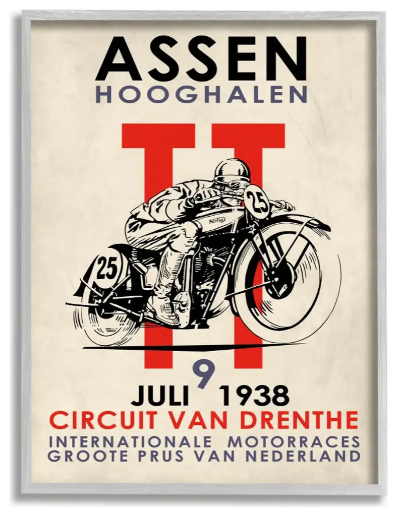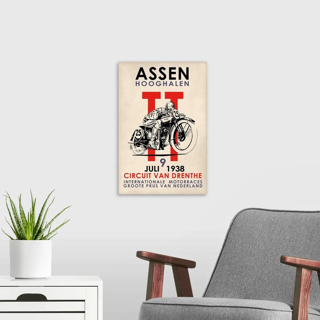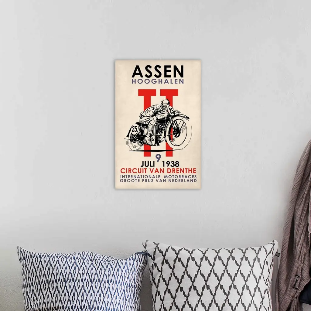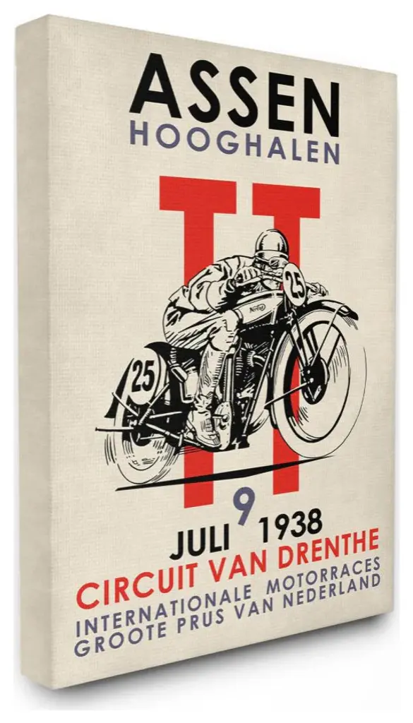 Assen TT Motorcycle Races 1938 wall art for home and office decor. Discover canvas art prints, photos, mural, big canvas art and framed wall art in GreatBigCanvas.com's varied collections.