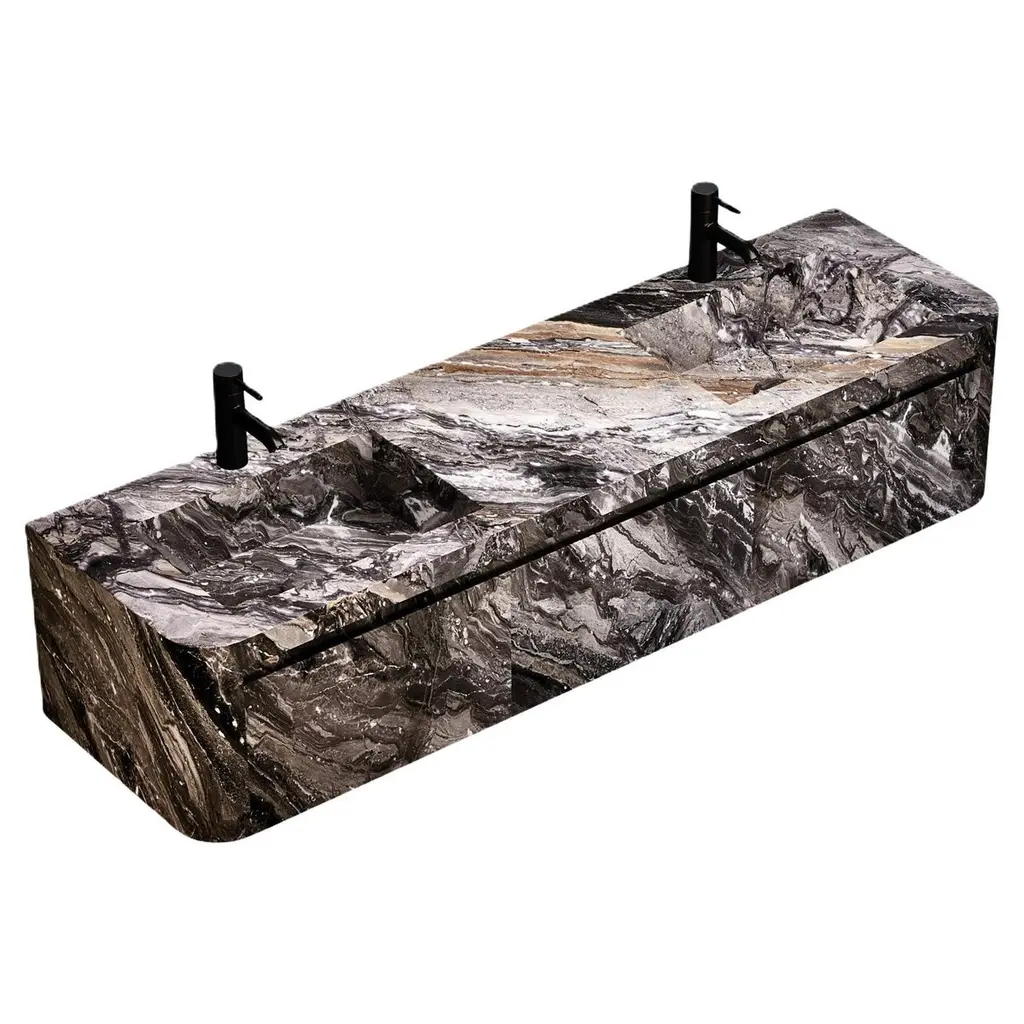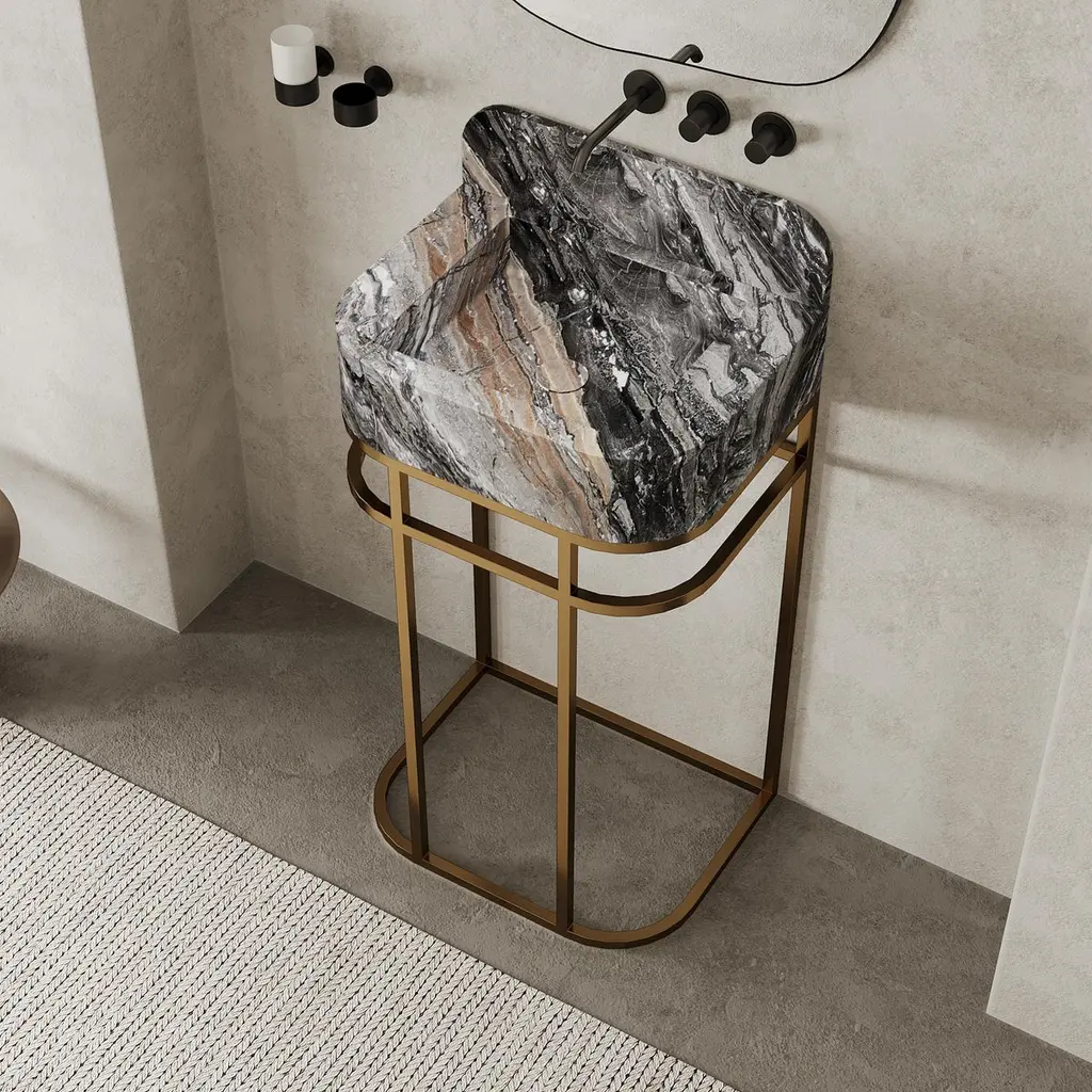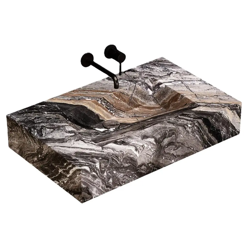 "The Assens is a luxurious marble basin featuring a sleek backsplash, seamlessly blending modern and traditional design elements. Its beveled edges and geometric shape create a refined yet timeless look, making it a stunning addition to any space.This basin is designed for use with brushed gold or black faucets and accessories, offering a stylish solution where space is limited. Available in multiple marble finishes, it allows you to choose the perfect aesthetic for your space.Please note: This listing is for the basin only and does not include the stand. If you wish to purchase the Assens Basin with the stand, please refer to the separate product listing for the Assens Free-standing Vanity. Lifestyle images are for illustrative purposes only and may feature a different size of the product. Actual product dimensions are specified on the product listing. Non-lifestyle images are of the actual product and will give you an accurate indication of size.The water supply kit, drain assembly, and faucet are not included.As marble is a natural material, variations in background color, veining distribution, and patterns are to be expected, making each piece uniquely beautiful."Dimensions: 60 x 45 x 30 CM