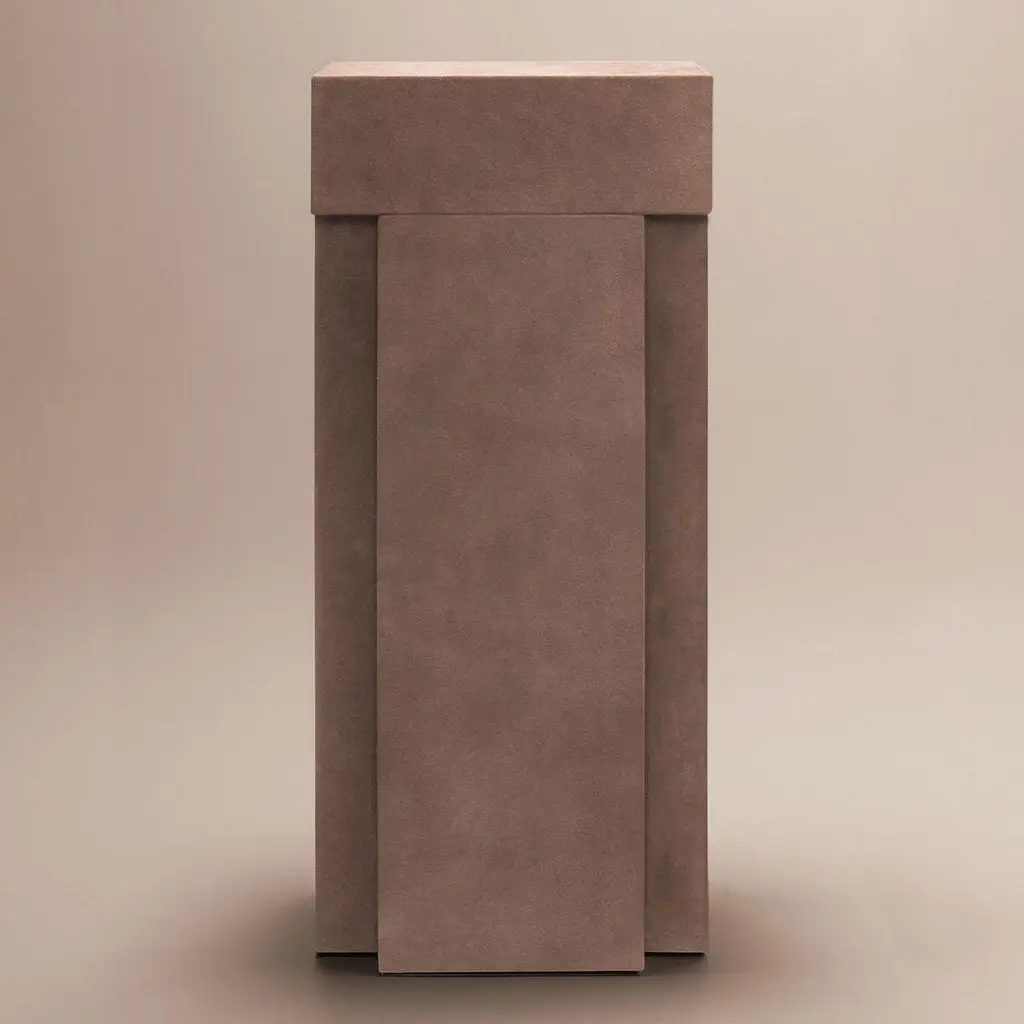 Assoluto is collection born from the orthogonal intersection of rigorously geometrical volumes. As a homage to the work of Carlo Scarpa, the massive forms and sharp edges create pleasing constrasts with the soft, natural charm of leather, and an eye-catching interplay of light and shadow, while the strong, clean lines provide each creation with a bold and unique visual aesthetics.