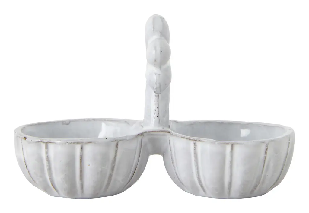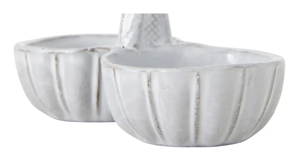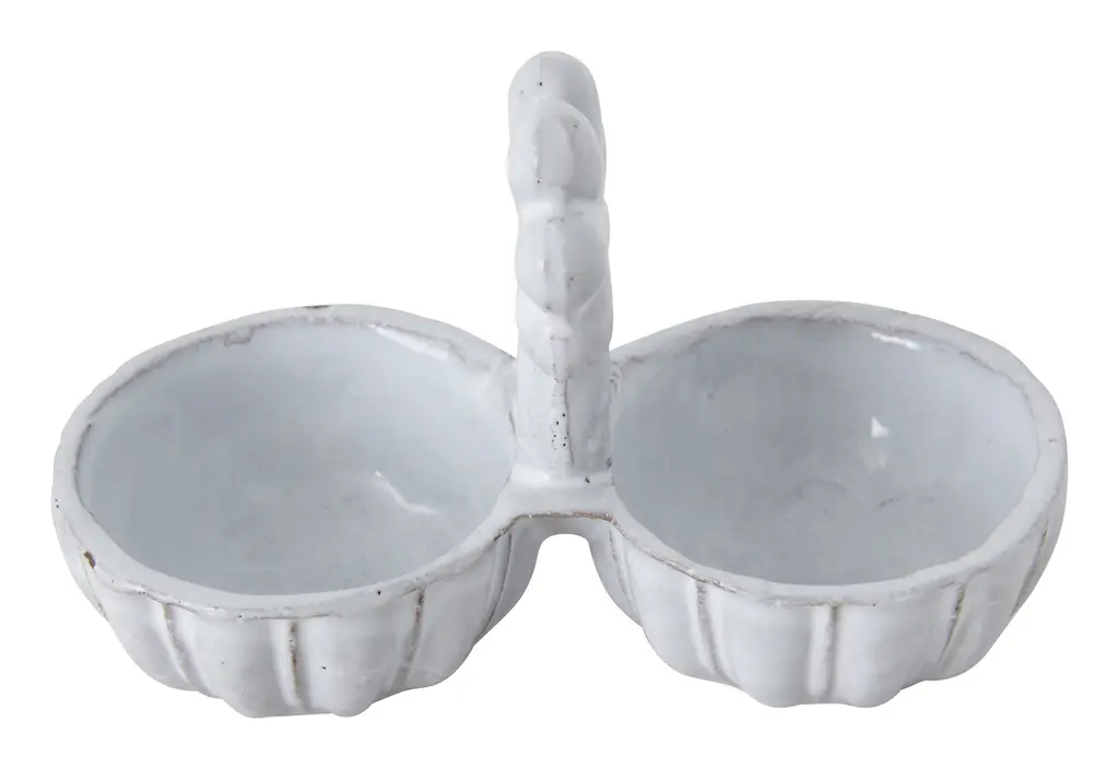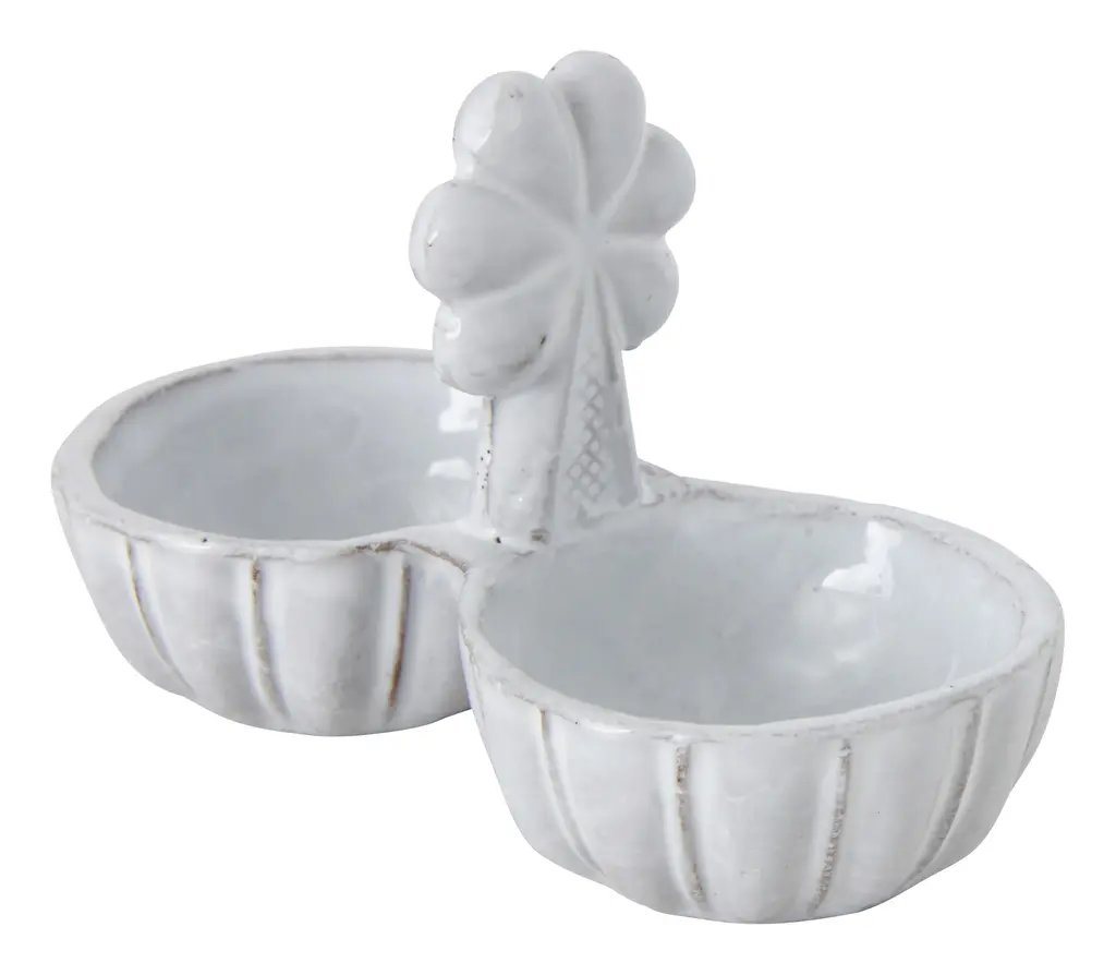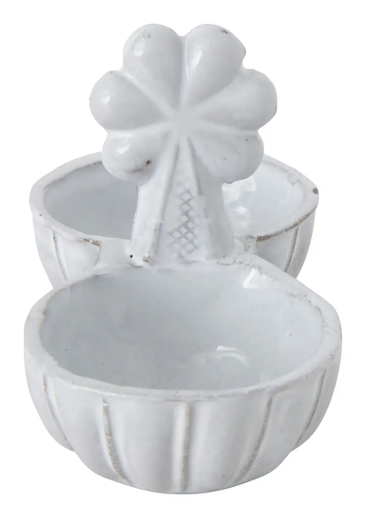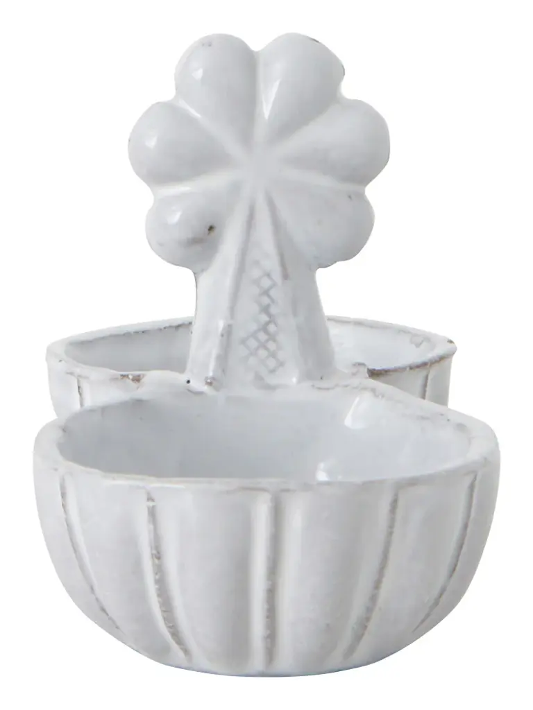 Every dish is better with a little extra seasoning — and our vintage-inspired Astier de Villatte Clover Salt & Pepper Cellar is our favorite way to add it. This delicate dish comes to us from renowned ceramicist Astier de Villatte’s Parisian workshop, where it was handcrafted from black terracotta clay following old-school techniques and finished with the brand’s signature milky white glaze. Made up of two tiny adjoining bowls, its center handle is molded into the shape of a lucky clover for a charming touch of character. Great sitting beside your cooking station for whenever you need to add a boost of flavor to whatever you’re whipping up, our Astier de Villatte Clover Salt & Pepper Cellar is also the perfect finishing touch for an elegant tablescape. •4.5"W x 2.25"D x 3"H •black terracotta clay •white glaze •astier de villatte•handmade in paris •each is unique Care Instructions•handwash only