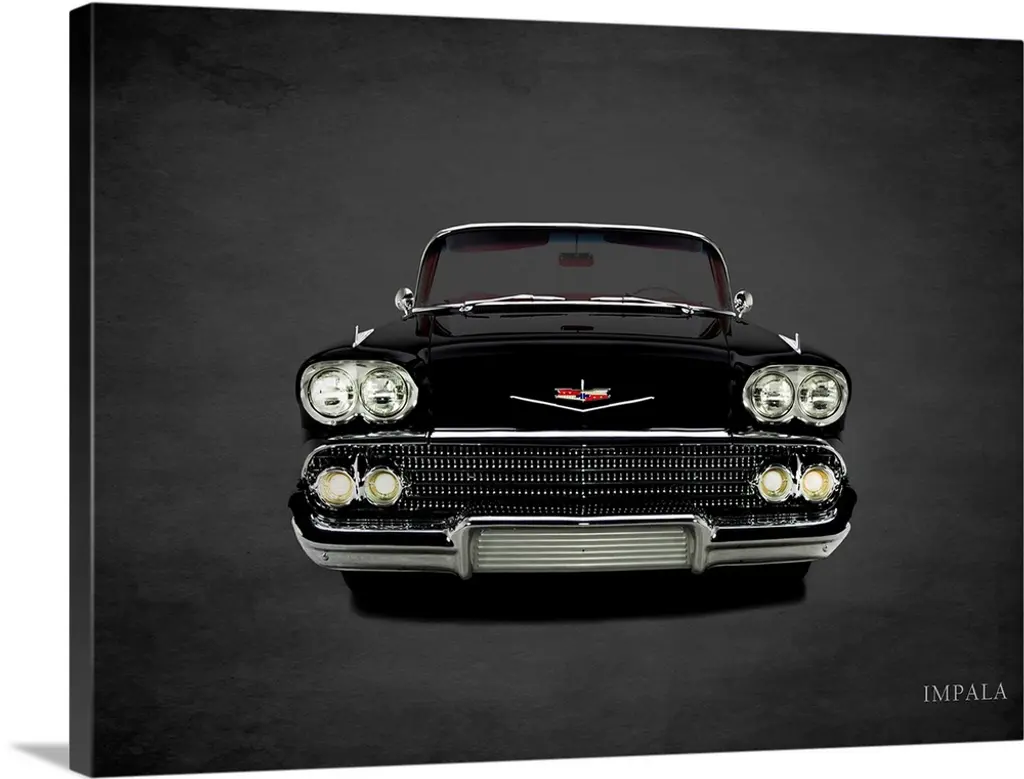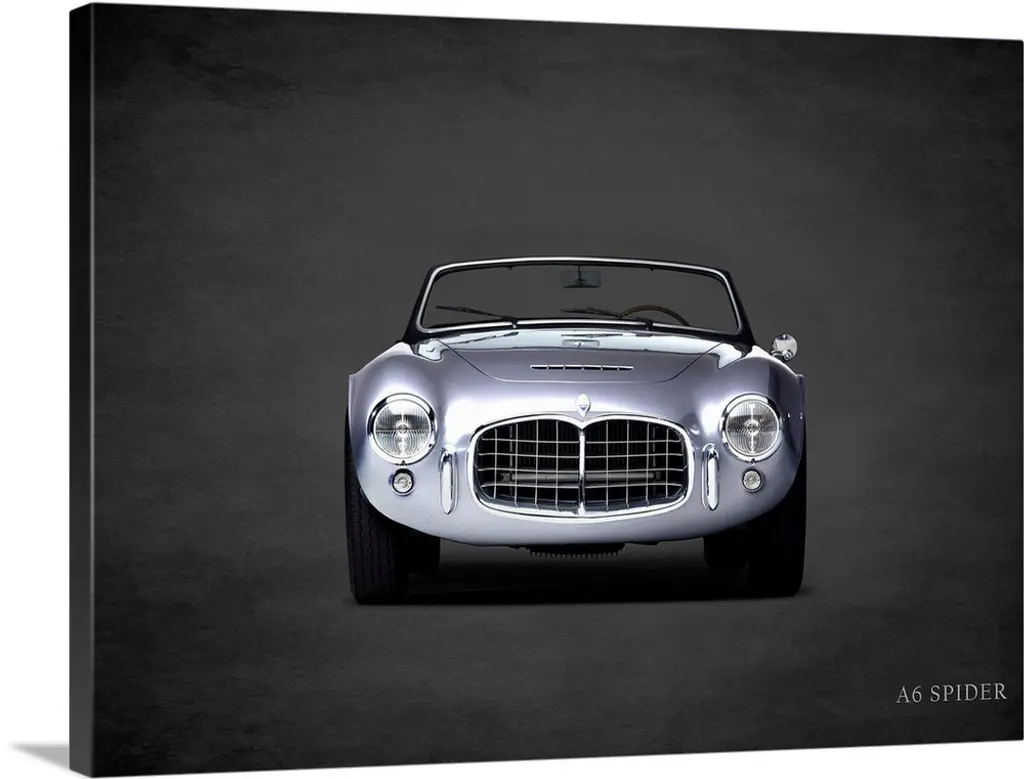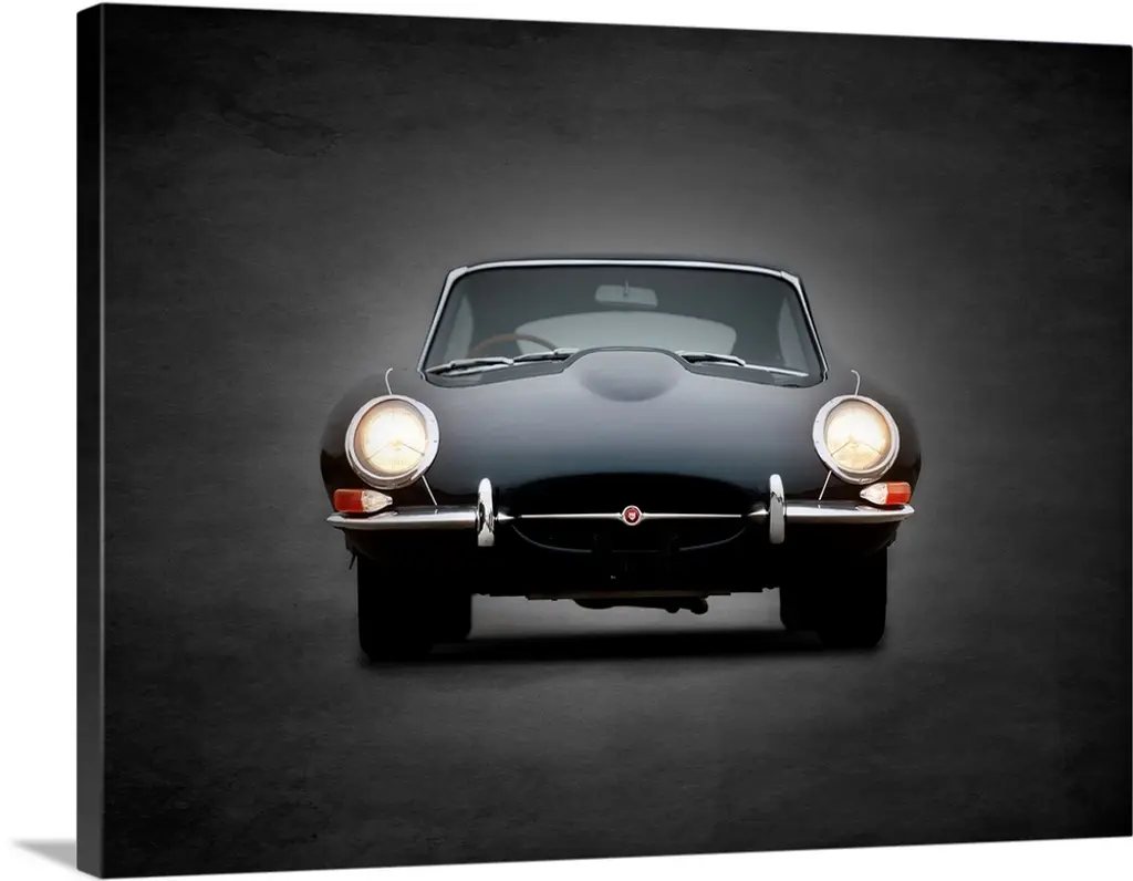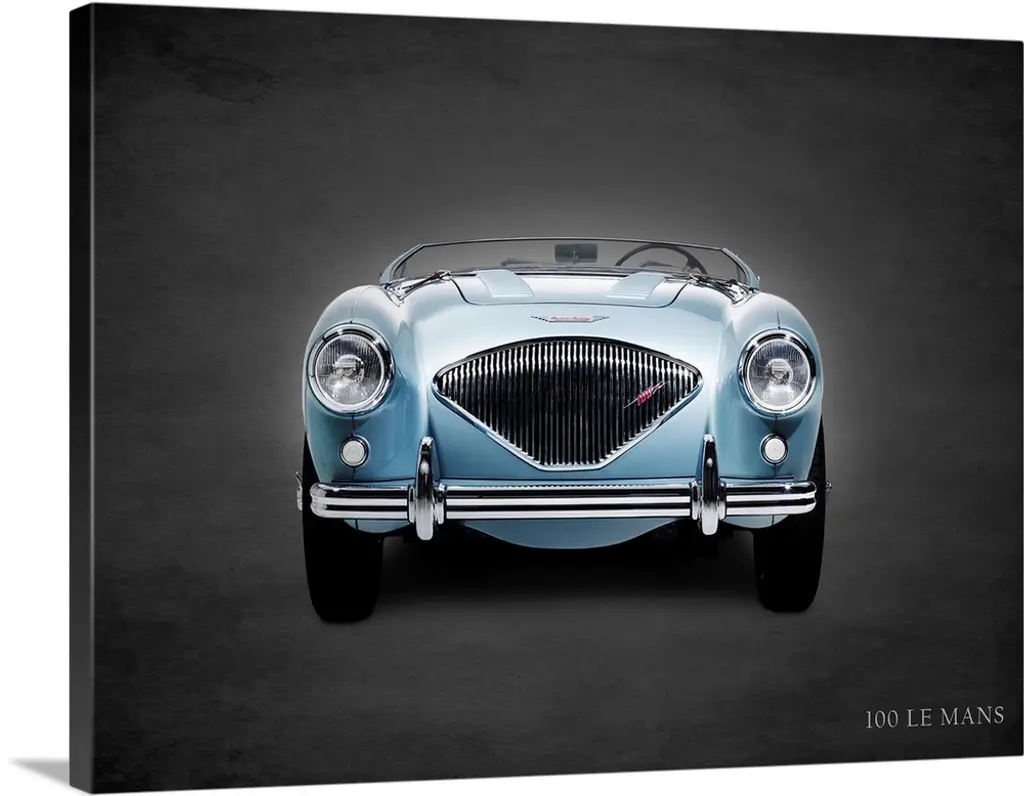 Photograph of a silver 1965 Aston Martin DB5 printed on a black background with a dark vignette.