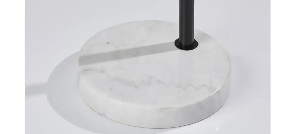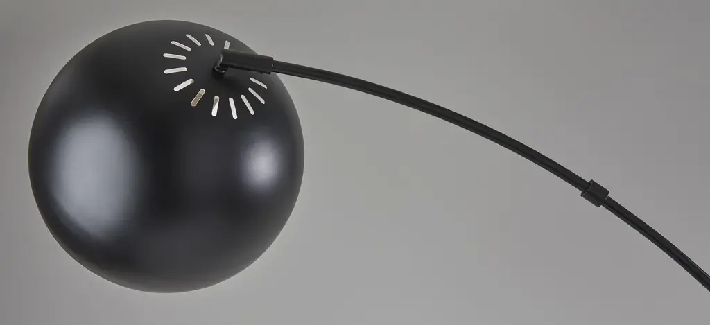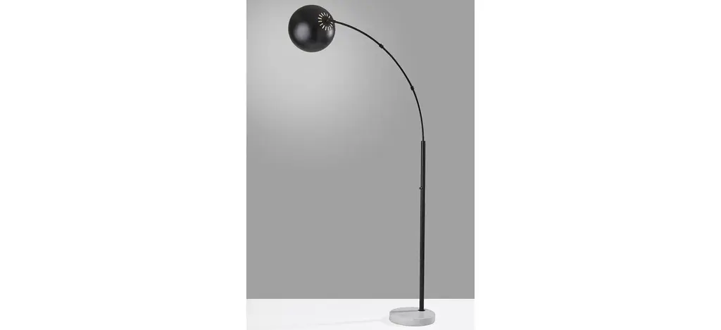 With a slim arched arm and a large dome-shaped metal shade, the Astoria Arc Lamp is a great way to achieve overhead lighting with style. A 150 Watt bulb can illuminate a large sitting area while an black finish and chunky white marble base bring a clean, modern look to any space. A rotary switch is located on the pole adjusting from low light to bright lighting.