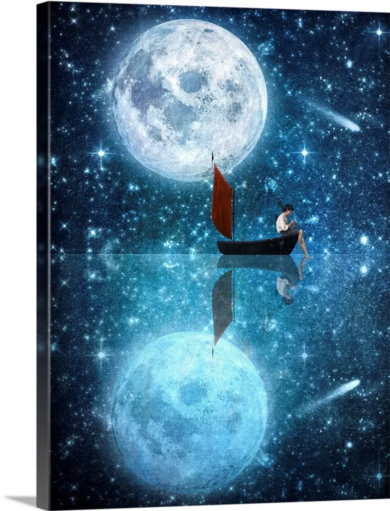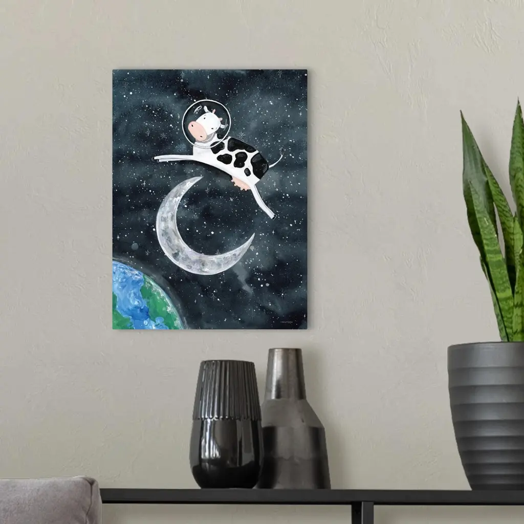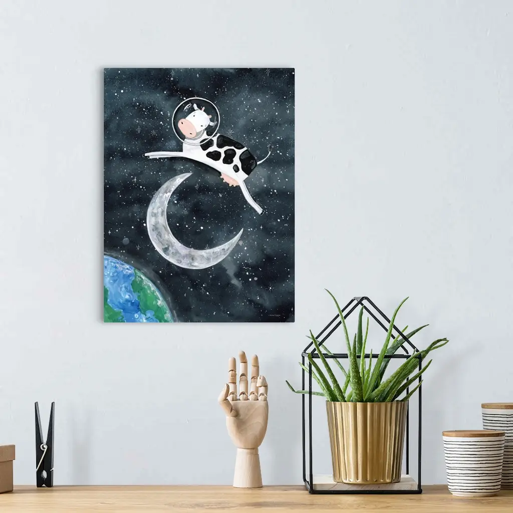 Astro Cow Jumps Over The Moon wall art for home and office decor. Discover canvas art prints, photos, mural, big canvas art and framed wall art in GreatBigCanvas.com's varied collections.