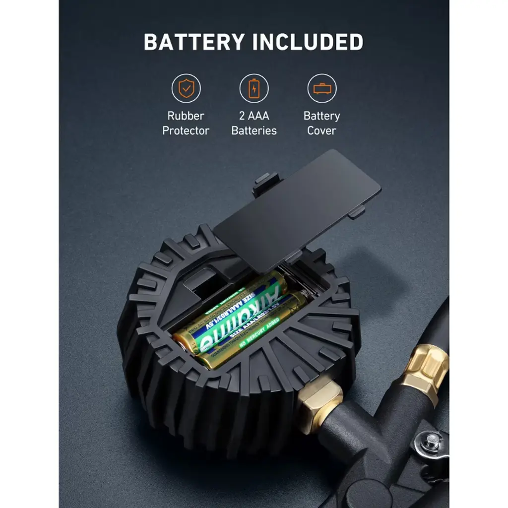 COMPATIBLE WITH both ¼” and ½” NPT air compressors outputs. COMPATIBLE WITH Standard Schrader Valves.ADVANCED ACCURACY: Professionally calibrated to always return an accurate reading within 1% of the exact pressure of your tire. No more guessing! Accurately measures in a range from 0-250 PSI (0-17.2 Bar; 0-1724 Kpa; 0-17.5 kg/cm^2). Stocking Stuffers for Men.INCREASED SAFETY: Properly inflated tires provide better performance in all weather conditions, decrease the likelihood of flats, explosions, and crashes; Increase your MPG, save money on fuel/tire wear, and drive safer.ALL-IN-ONE FEATURES: AstroAI tire pressure gauge Includes an inflator, straight locking chuck, gauge, hose, and bleed valve, all in one unit with function of deflation, inflation(connect to an air compressor), tire pressure check.SUPERIOR CONSTRUCTION: Made with heavy-duty stainless steel and high-quality brass components, our inflator delivers lasting reliability and performance. Its leak-proof lock-on chuck allows the inflator to handle pressure from cars, trucks, motorcycles, SUVs, off-road vehicles, RVs, trailers, and more.BATTERY SAVER: Automatically turns on when pressurized air is detected and turns off after 20 seconds of inactivity.
