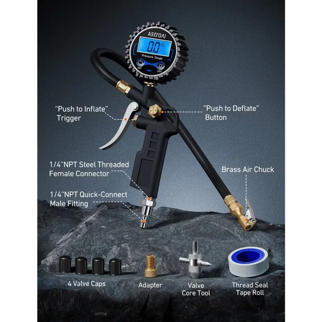 Astroai Digital Tire Pressure Gauge With Inflator, 250 Psi Air Chuck & Compressor Accessories