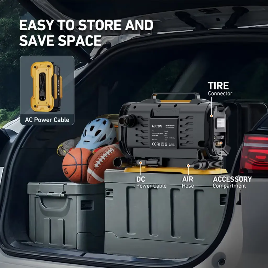 Astroai M1 Tire Inflator 150psi Air Compressor Pump 12v Dc/110v Ac With Dual Metal Motors