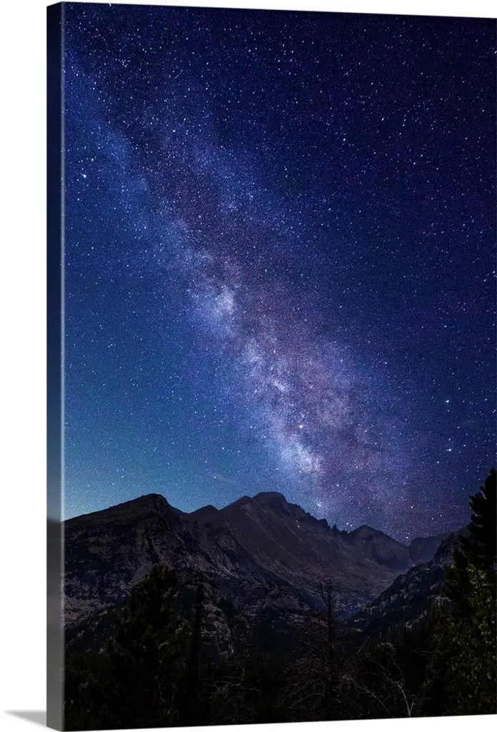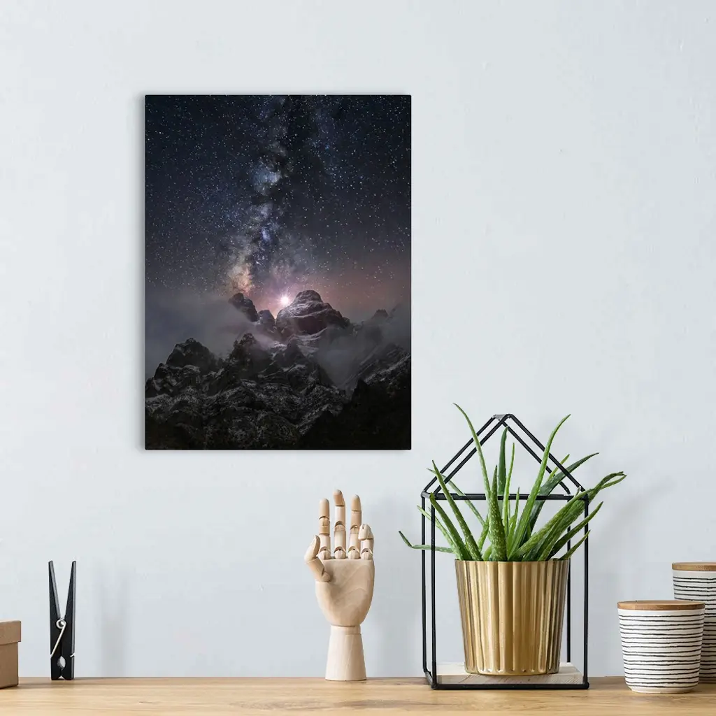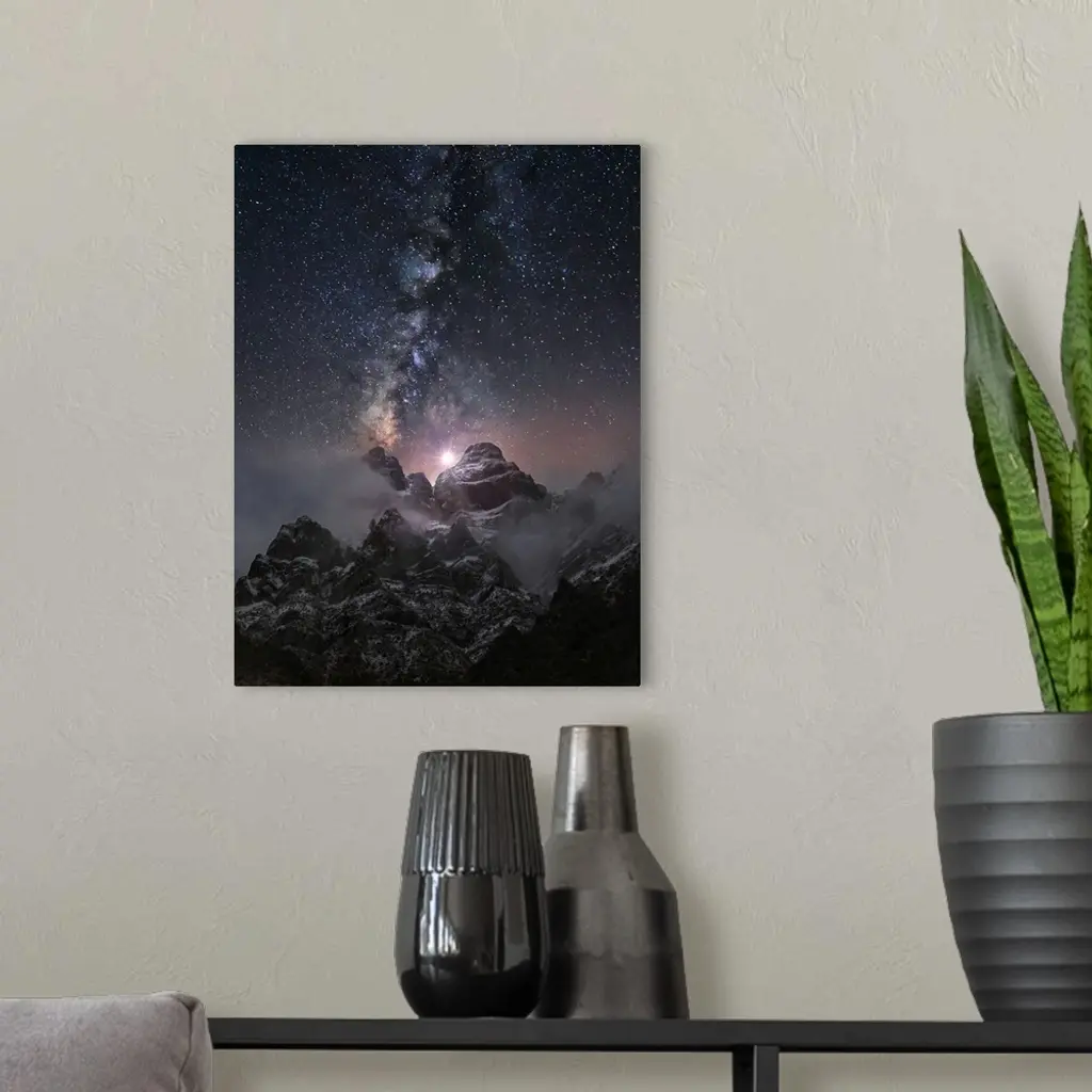 Night view of the Milky Way galaxy above rocky landscape, Greece.