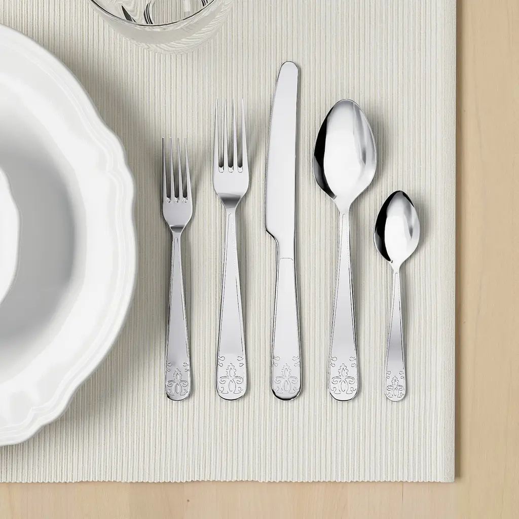 ÄTBART 20-piece flatware set - stainless steel. The cutlery is made of stainless steel that is durable and easy to clean. Add an extra touch to your table setting with this festive cutlery. Includes: Fork, knife, spoon, teaspoon and dessert/salad fork, 4 of each.