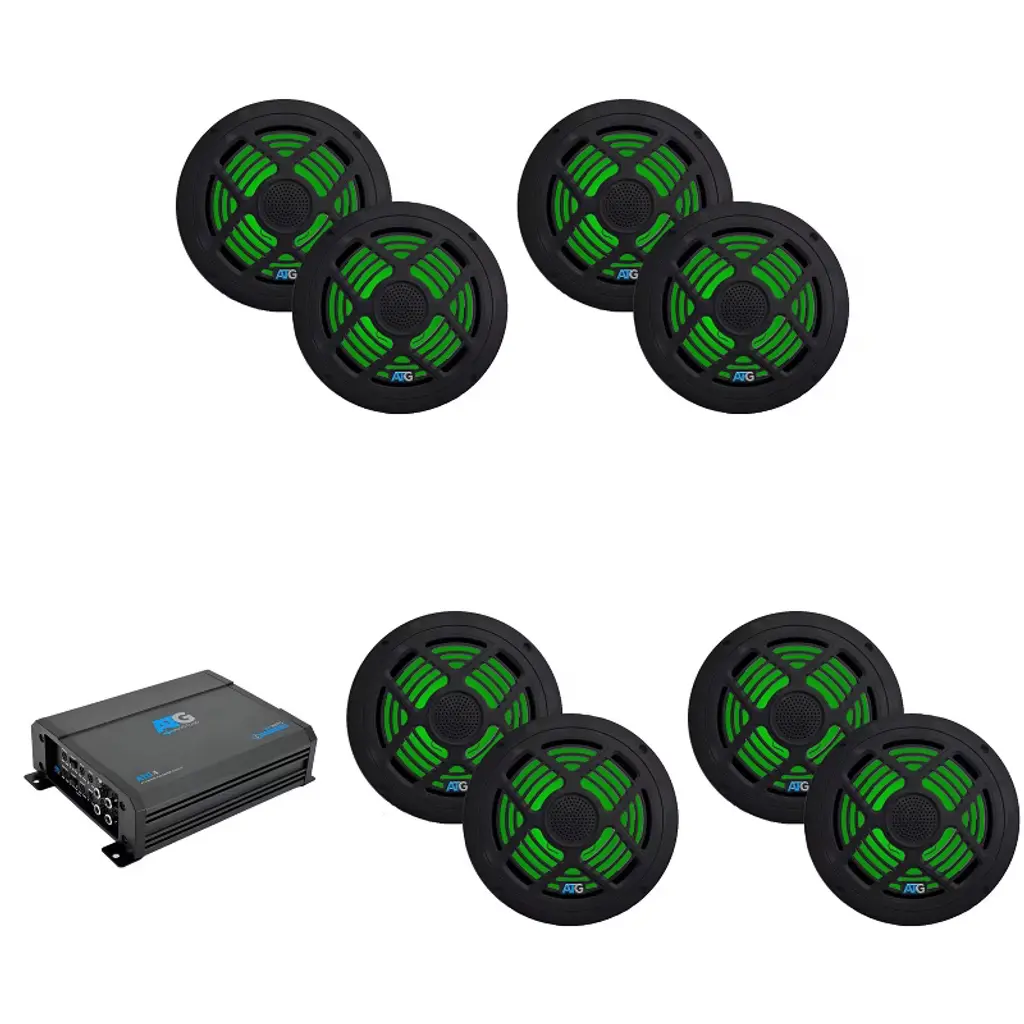 Atg 1000 Watt Rms Full Range Compact Marine 4 Channel Amplifier With (2) Pair 8" Rgb White Marine Speakers