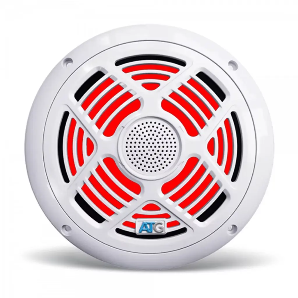 Enhance your marine audio experience with this comprehensive bundle featuring the ATG Audio NEO Marine 4-Channel Amplifier and 2 ATG Audio Marine 8" Coaxial Speakers with RGB LEDs. The ATG4 amplifier provides 4 x 125W @ 4-Ohms of clear and powerful sound suitable for the harshest marine environments. With Class D technology and marine-grade components, this amp ensures reliability and performance. Key features include a variable low pass crossover, bridgeable outputs, and compatibility with various loudspeakers. The speakers, ATG8MRGB-W, boast an 8" 2-way design with a polypropylene cone and PEI dome tweeter for crisp, detailed sound. These water-resistant speakers deliver 160W peak power and 65W RMS power, ensuring great sound quality even in noisy conditions. With RGB lighting, you can customize the speakers' appearance to match your mood or boat's aesthetics. This bundle is a versatile and high-quality audio solution that will elevate your boating experience with its powerful sound, durable construction, and customizable lighting features. Get ready to enjoy your favorite tunes on the water like never before with this premium audio bundle.