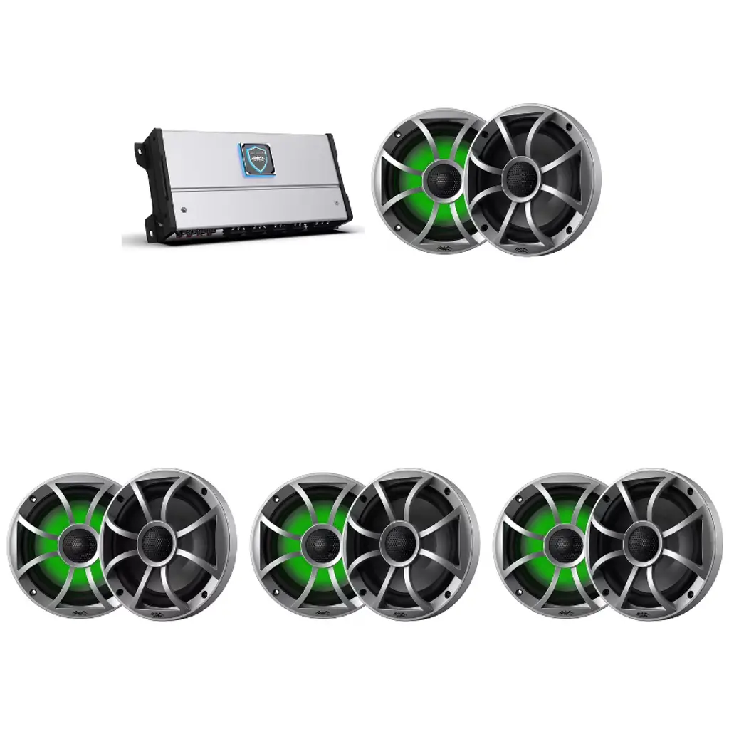 Atg 1000 Watt Rms Full Range Compact Marine 4 Channel Amplifier With (4) Pair 8" Rgb Black Marine Speakers