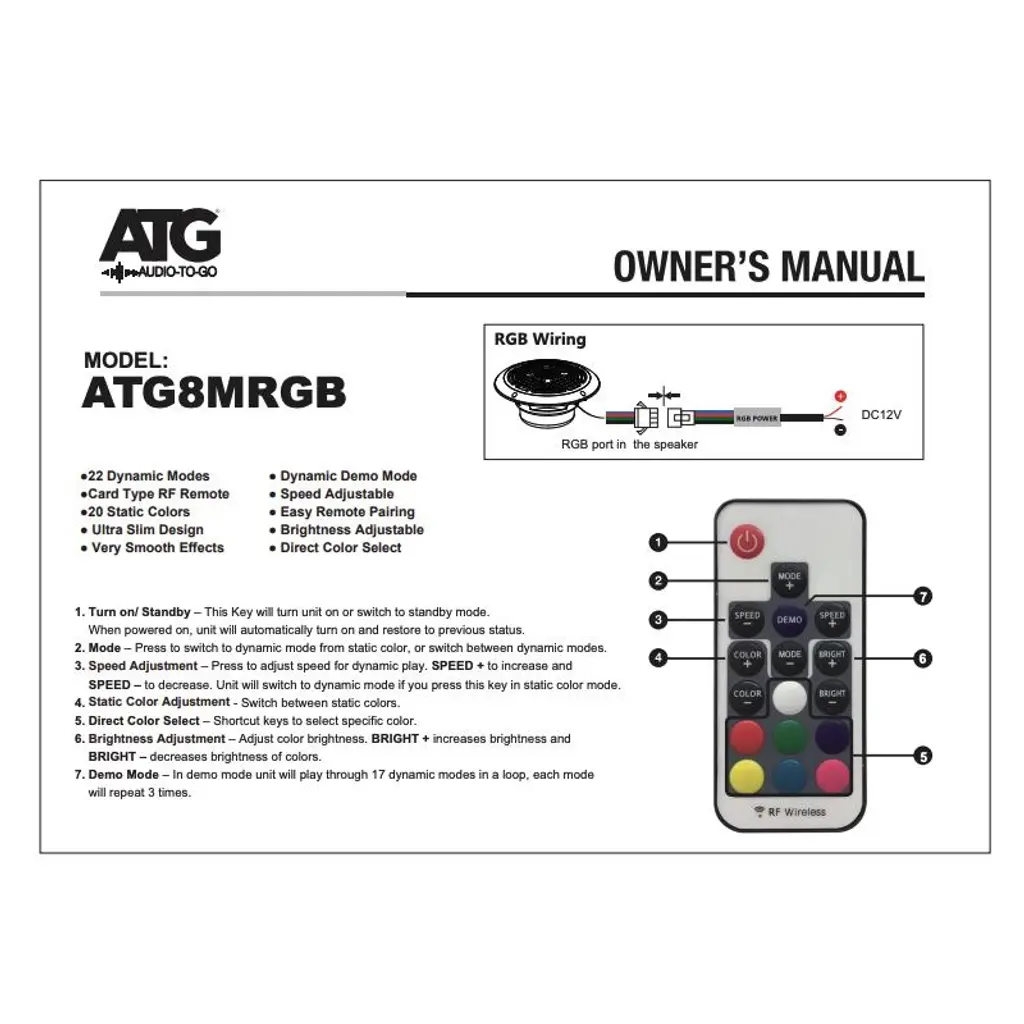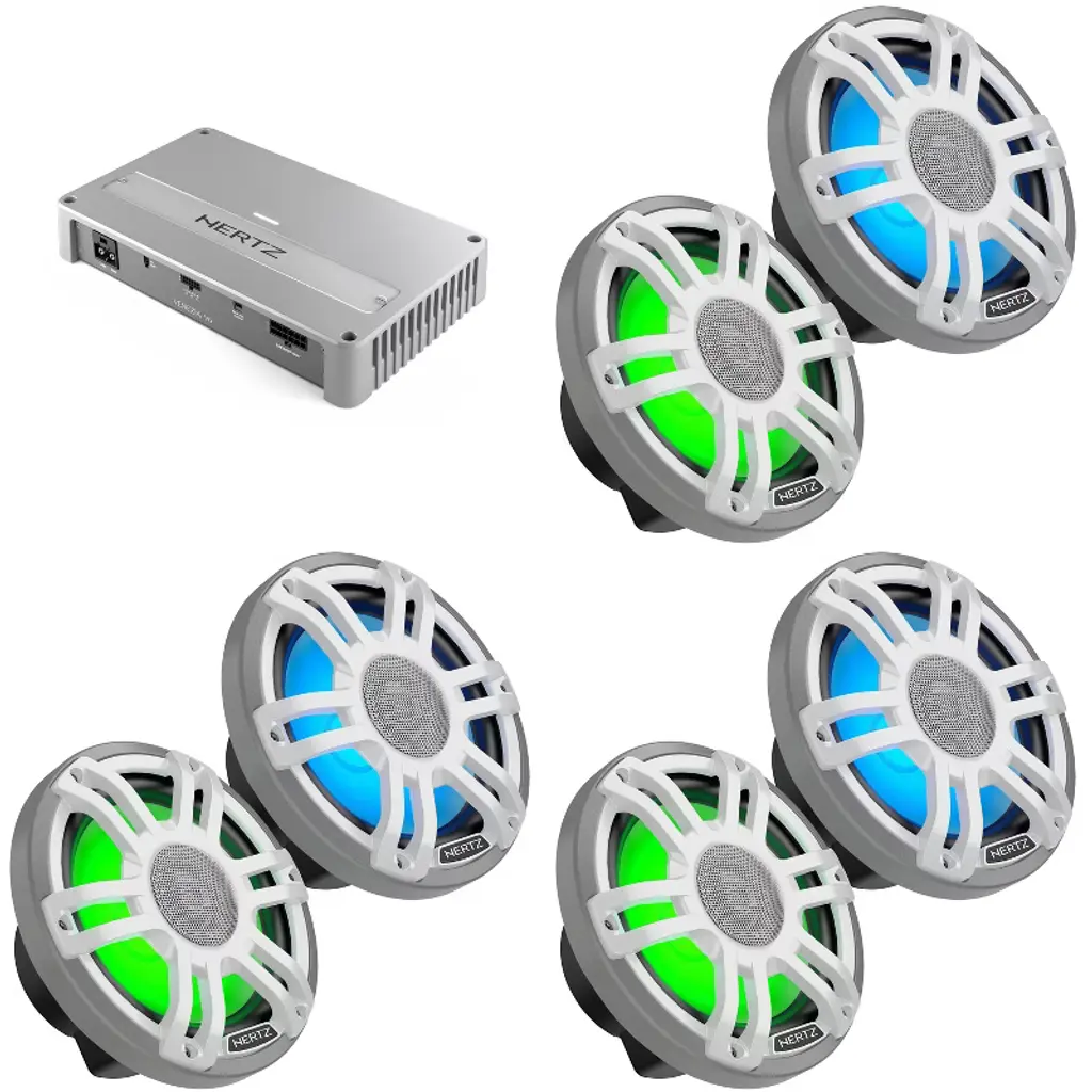 Enhance your marine audio experience with this all-in-one ATG Audio bundle. It includes a powerful ATG Audio NEO Marine 4-Channel Amplifier (ATG4) delivering 4 x 125W @ 4-Ohms, and 4 ATG Audio Marine 8" Coaxial Speakers with RGB LEDs, Pair, Black, 160W (ATG8MRGB-B). The ATG4 amplifier boasts 1000W peak power, 2-Ohms mono load capability, and Class D technology for clear, accurate sound. Features include variable low pass crossover, bass boost, and marine-grade conformal coating. With a compact design, it's compatible with various loudspeakers and offers multiple output power options. On the other hand, the ATG8MRGB-B speakers feature an 8" 2-way design, polypropylene cone, and PEI dome tweeter for crisp sound quality. Water-resistant construction ensures durability, while the RGB lighting adds a customizable touch. These speakers deliver 160W peak power, 65W RMS power, and have a frequency range of 55Hz - 20KHz. The package includes RGB harnesses and a controller for easy setup. Overall, this bundle provides powerful marine audio solutions that combine reliability, performance, and customization. Upgrade your boat or watercraft with these high-quality components for an enhanced audio experience on the water.