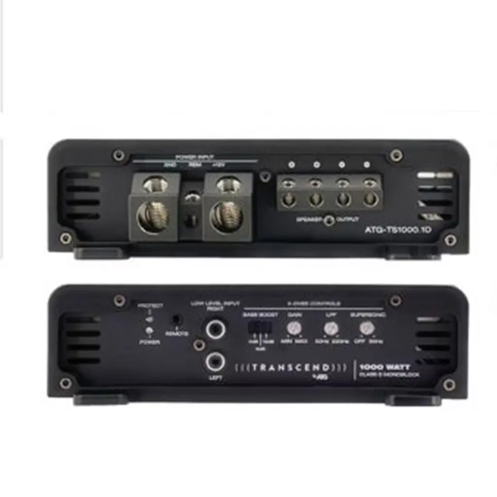 Enhance your car audio experience with this comprehensive bundle featuring 2 ATG Audio Transcend Series 8" Dual 4-Ohm Subwoofers, a powerful 1800w Class-D Mono Subwoofer Amplifier, and a 100% Copper 0 Gauge Amplifier Kit with ANL Fuseholder. The ATG-TS8X2.4 Subwoofers deliver peak power of 1500 watts and RMS power of 750 watts, ensuring robust bass performance. Features include a 2.5” BASV high-temperature voice coil, non-pressed paper cone, dual poly-cotton dampeners, and a die-cast aluminum vented basket. The subwoofers also feature large gauge compression terminals for a secure connection. With dimensions of 12" x 4" x 5.68", these 8" subwoofers are designed for optimal sound quality. The ATG-TS1800.1D Mono Subwoofer Amplifier boasts 1000W peak power, 2Ω mono load capability, and Class D circuitry for premium sound reproduction. Marine-grade components ensure durability, while features like a variable low pass crossover, bass boost, and sub-sonic filter offer customization options. Key specifications include a total power of 1000 watts and dimensions of 9.45" x 15.35" x 3.74". The ATG0CXANL Amplifier Kit includes essential components like 17' of 0 gauge 100% copper RCA cable, 17' of 18 gauge remote wire and speaker cable, 3' of 0 gauge 100% copper ground cable, an ANL fuse holder, and a 250 amp ANL fuse. This kit provides everything needed for a seamless amplifier installation. Upgrade your car audio system with this high-quality bundle, featuring powerful subwoofers, a reliable amplifier, and a complete amplifier kit. Immerse yourself in clear, crisp sound with the ATG Audio Transcend Series and enjoy a premium audio experience on the road.