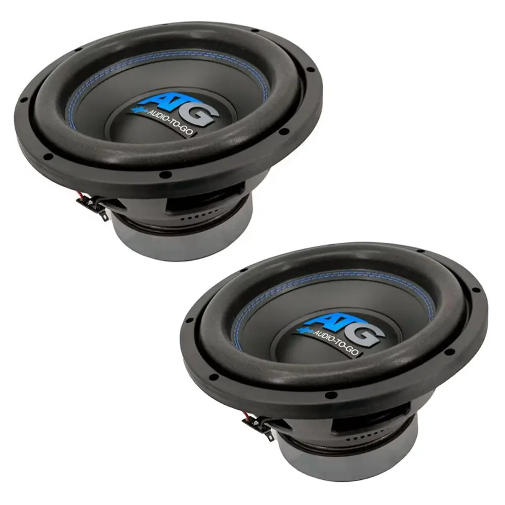 Enhance your car's audio system with this impressive bundle including the ATG Audio Transcend Series 2500w Class-D Mono Subwoofer Amplifier and 2x ATG Audio Transcend Series 12" Dual 4-Ohm Subwoofers. The ATG-TS2500.1D amplifier boasts a peak power of 2500W, driving deep bass with its 2Ω mono load capability. Its Class-D circuitry ensures clean sound while the marine-grade components maintain performance in tough conditions. Customize your audio with features like variable low pass crossover and bass boost. Enjoy powerful, precise sound and a sturdy build with dimensions of L:9.45" x H:3.74" x W:24.01". The ATG-TS12X2.4 subwoofers deliver 3000W of maximum power and 1500W RMS power, featuring a 3" BASV high-temperature voice coil for accurate sound reproduction. The non-pressed paper cone and dual poly-cotton dampeners ensure a rich bass response, while the die-cast aluminum vented basket dissipates heat efficiently. The subwoofers measure 14.5" x 12.52" x 7.2". Transform your car audio experience with this comprehensive bundle, combining powerful amplification and high-performance subwoofers for a truly immersive sound journey. Upgrade your sound system today with Audio To Go's premium Transcend Series components.