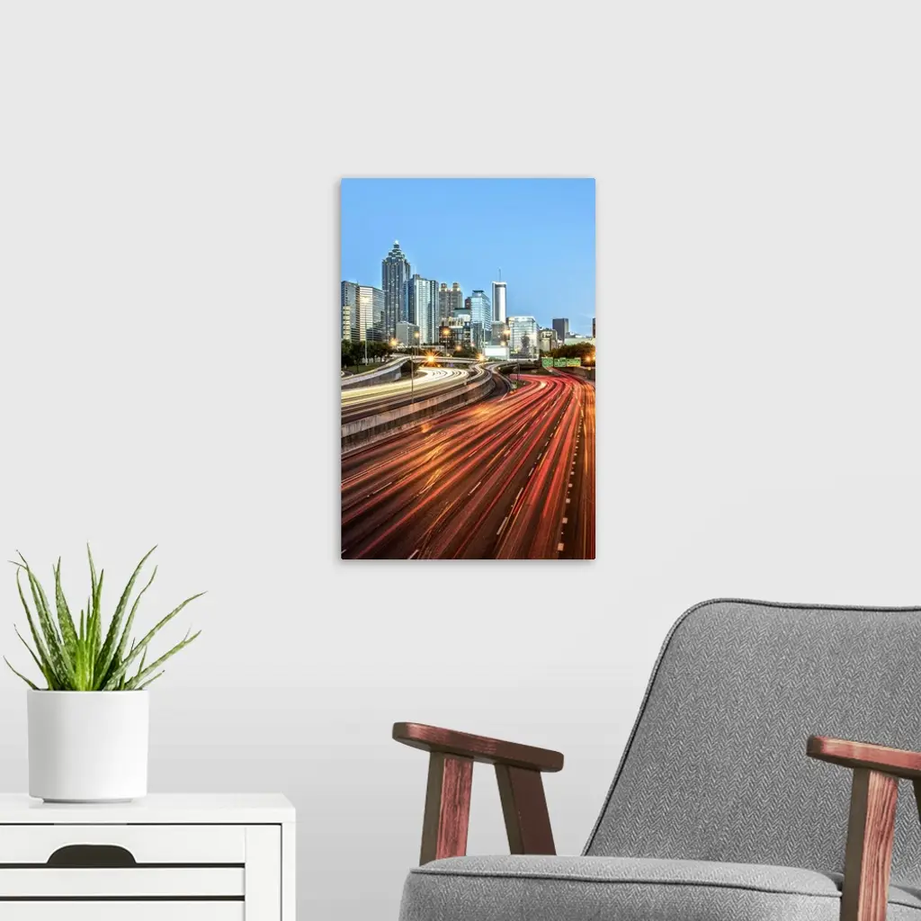 Atlanta, Georgia Skyline At Dusk With Light Trails