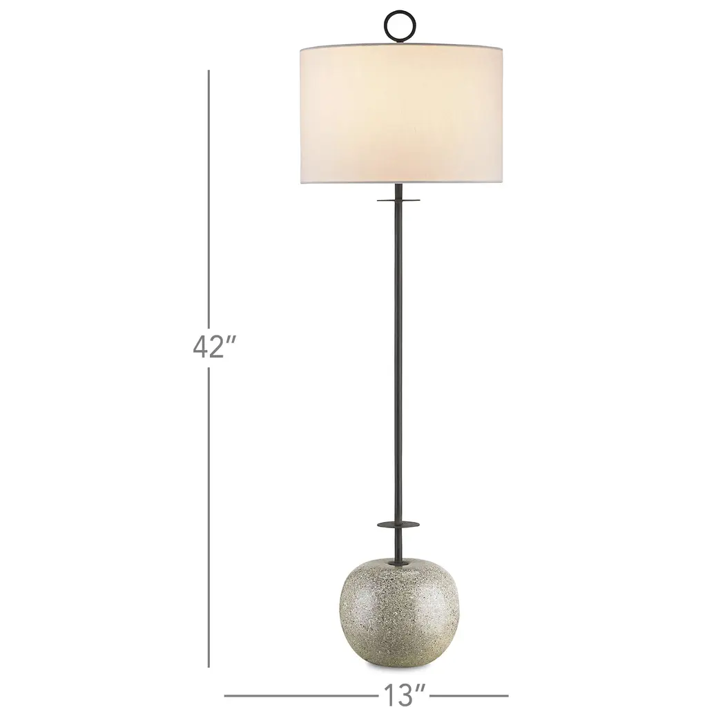 The statuesque Atlas Console Lamp is the master of its own world, weighted as it is by its globelike polished concrete base. The tall, slender body, its disc-like accents and the circular finial have been treated to a blacksmith finish. The proportion of the off-white linen shade on this lamp brings it a worldly charm.