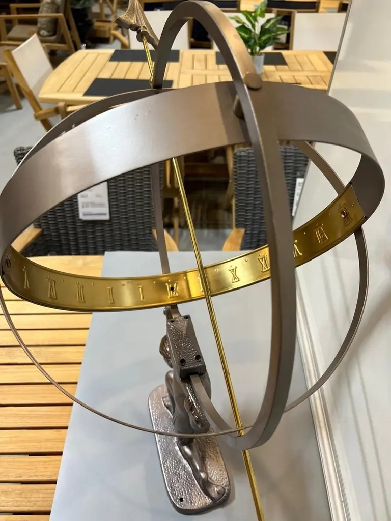 Atlas Armillary Sundial In Pewter Finish With Brass Accents