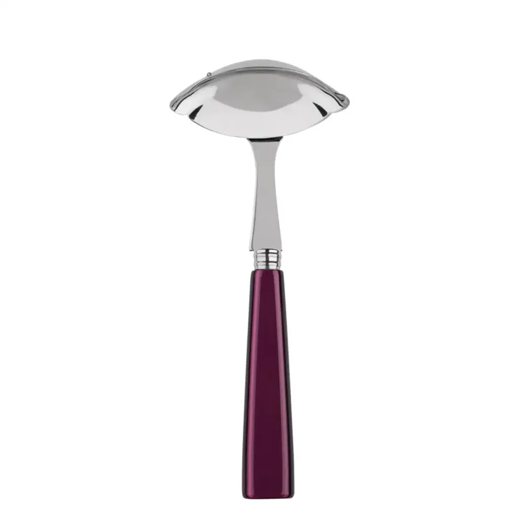 Ideal for serving delicious soups with sophistication, this refined ladle belongs to the Atlas Collection, distinguished by sleek handles in sustainable, bio-based resin exquisitely worked by hand to achieve an impeccable nacre-like appearance. The glistening upper in polished and mirrored stainless steel enhances the overall luminosity, harmonizing with the iridescent quality of the handle. Includes a fine velvet case.
