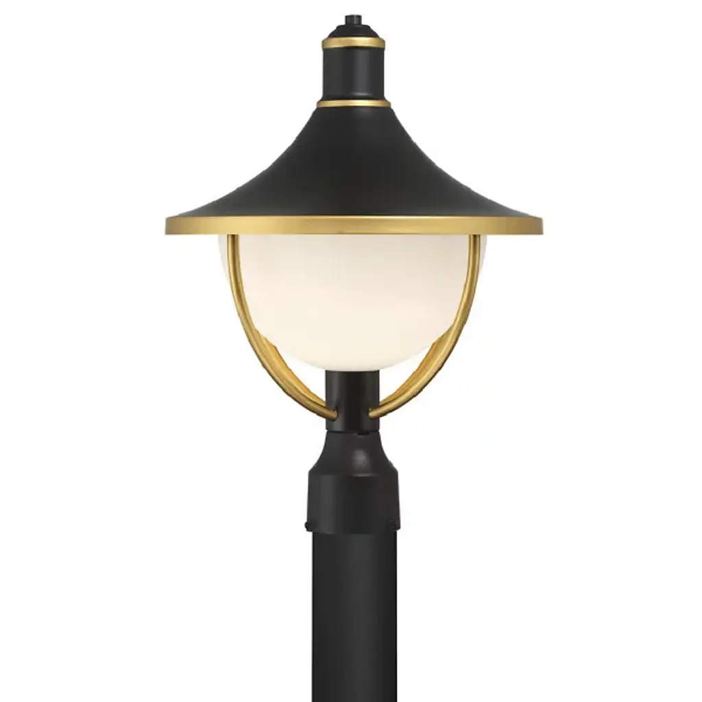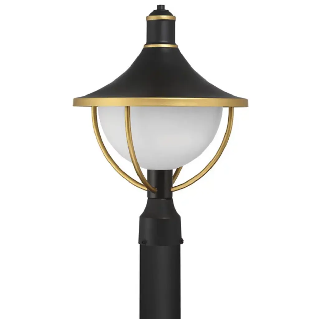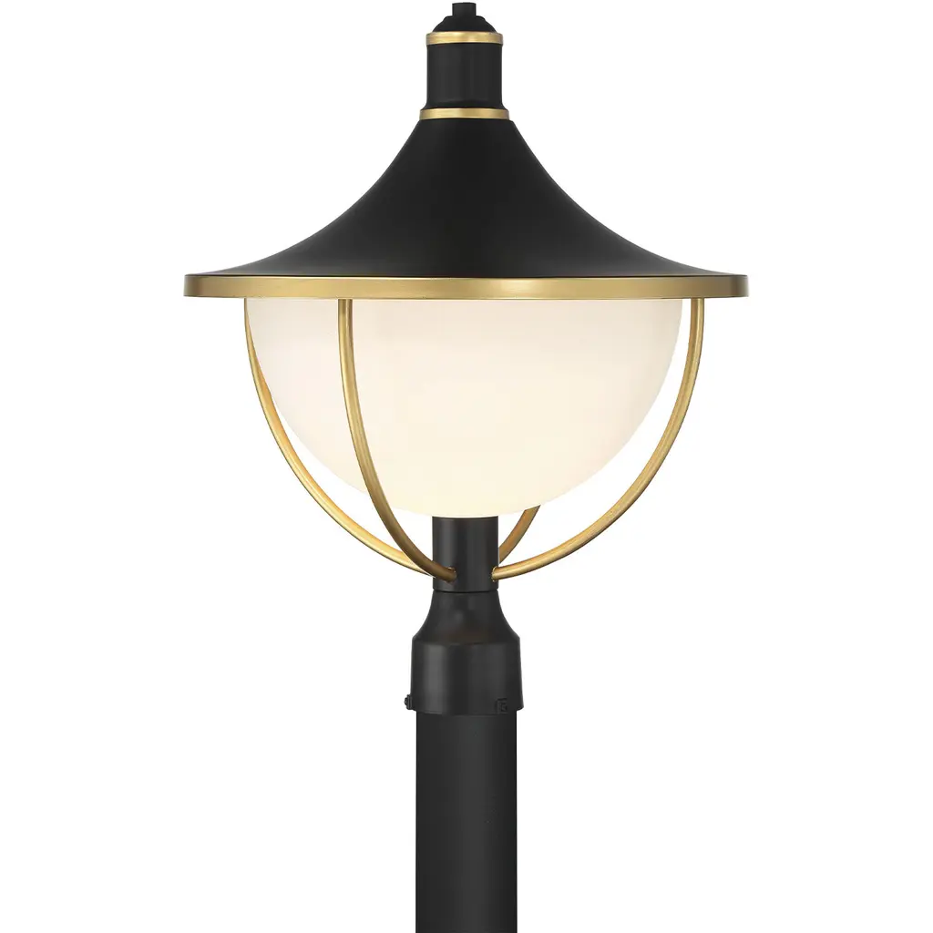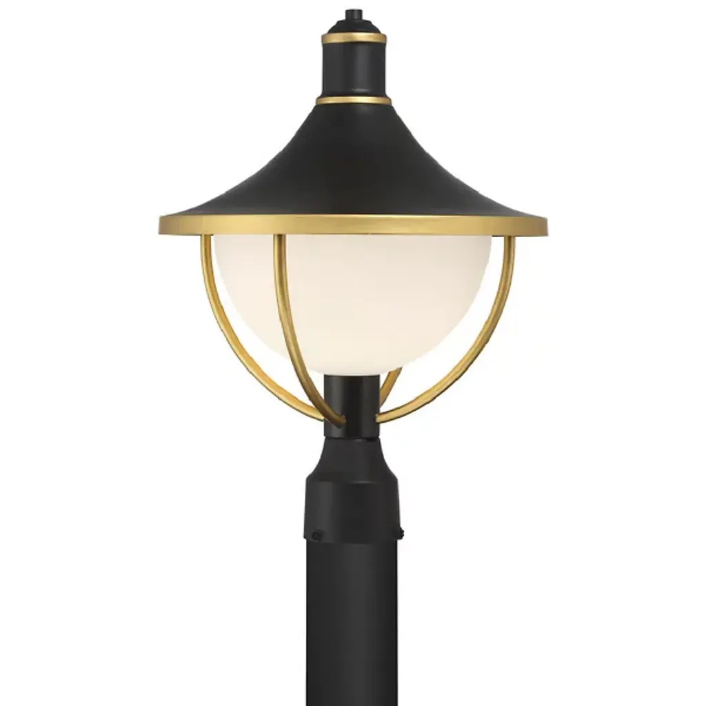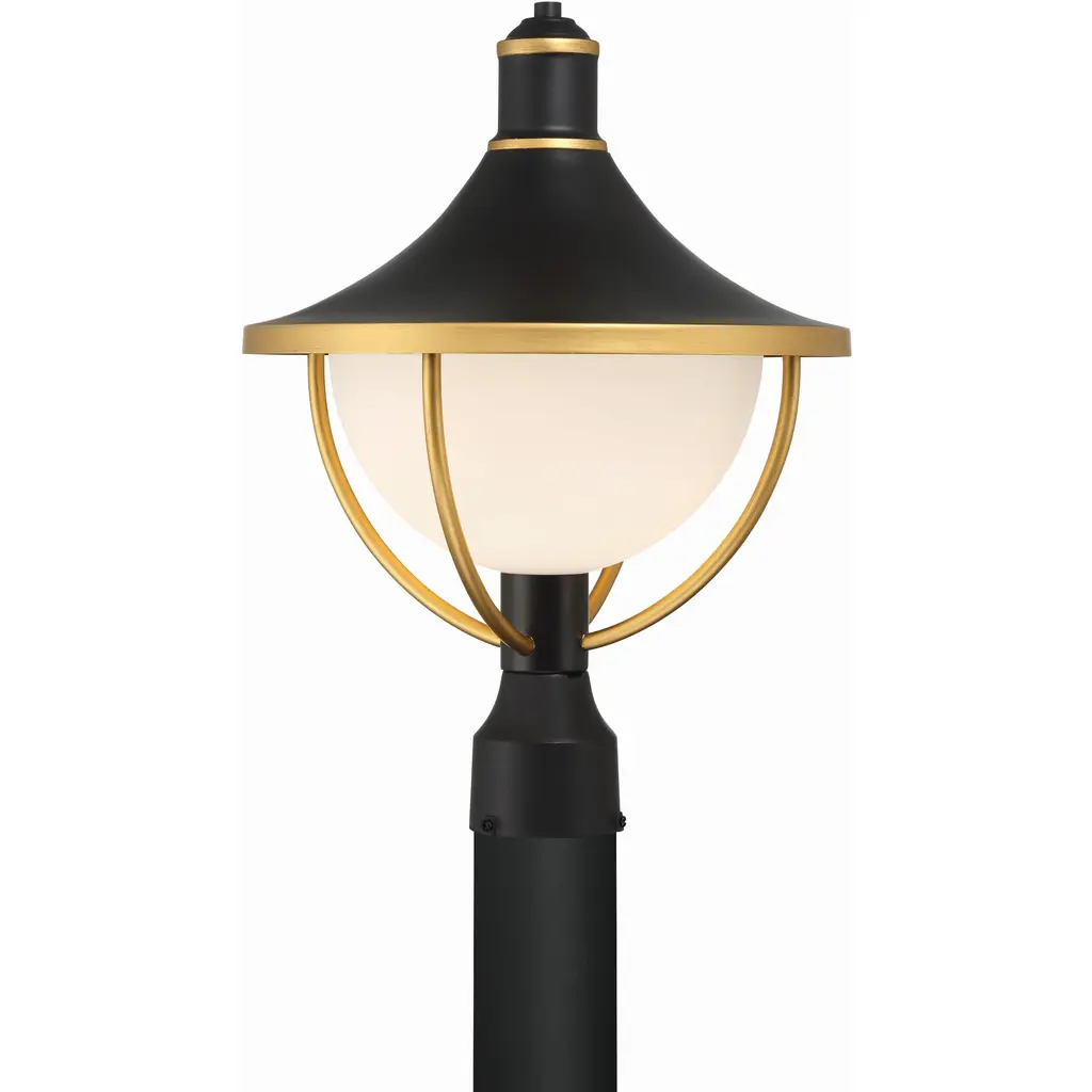 The Atlas Outdoor Post Light from Crystorama blends durability, transitional style, and functionality for outdoor spaces. Crafted from steel, this post light is designed to withstand the elements. Atlas features a conical crown that gives it a distinctive hat-like appearance and adds character and charm to your environment. Its white glass shade, cradled by the curved framework, emits a radiant and welcoming glow, enhancing the ambiance of your living area.