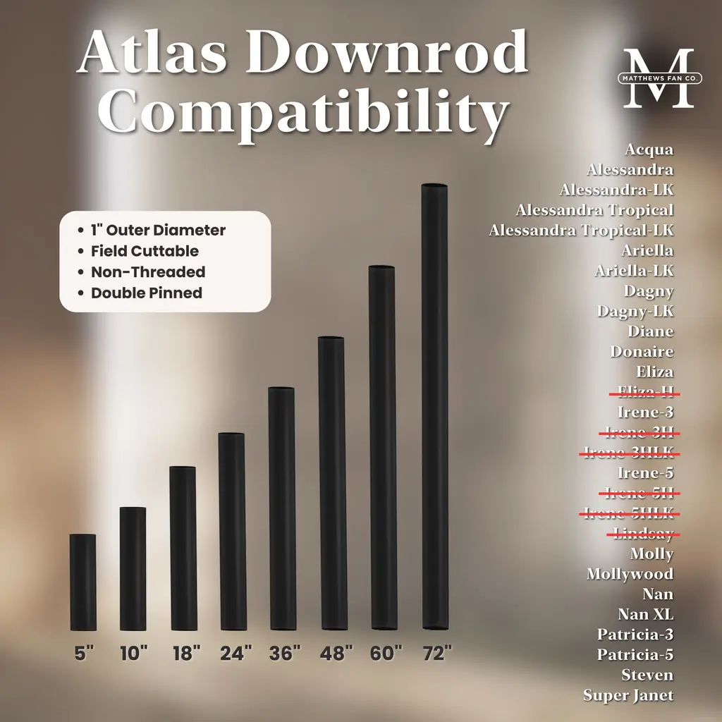 Our 24" Downrod brings your Atlas downrod ceiling fan to the perfect height in rooms with soaring ceilings. With precision craftsmanship and a seamless aesthetic, it ensures optimal airflow and a balanced.