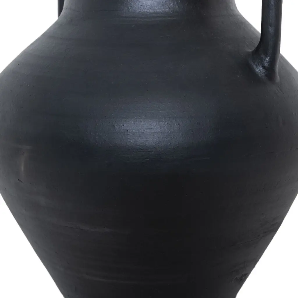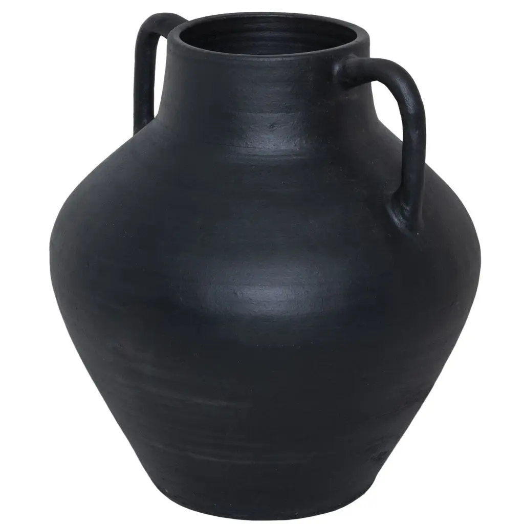 Hand-thrown clay ensures each piece of this Grecian-style vase with slim arch handles has unique character. Not water-tight; for decorative use only.