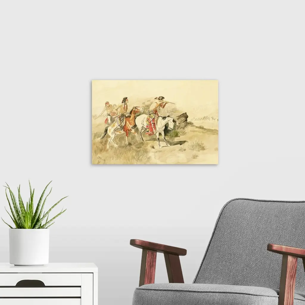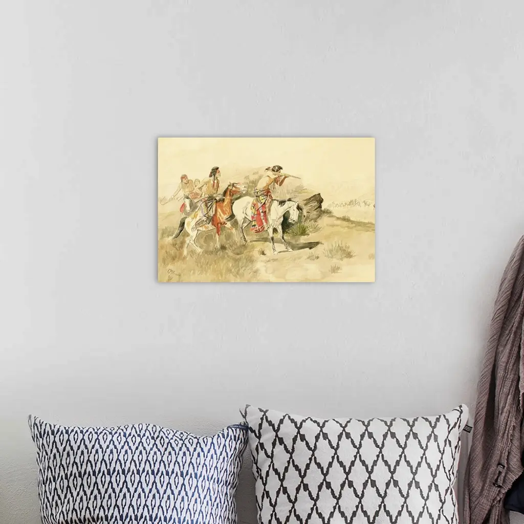Attack on the Muleteers, c. 1895, pencil and watercolor on paper. By Charles Marion Russell (1865-1926).