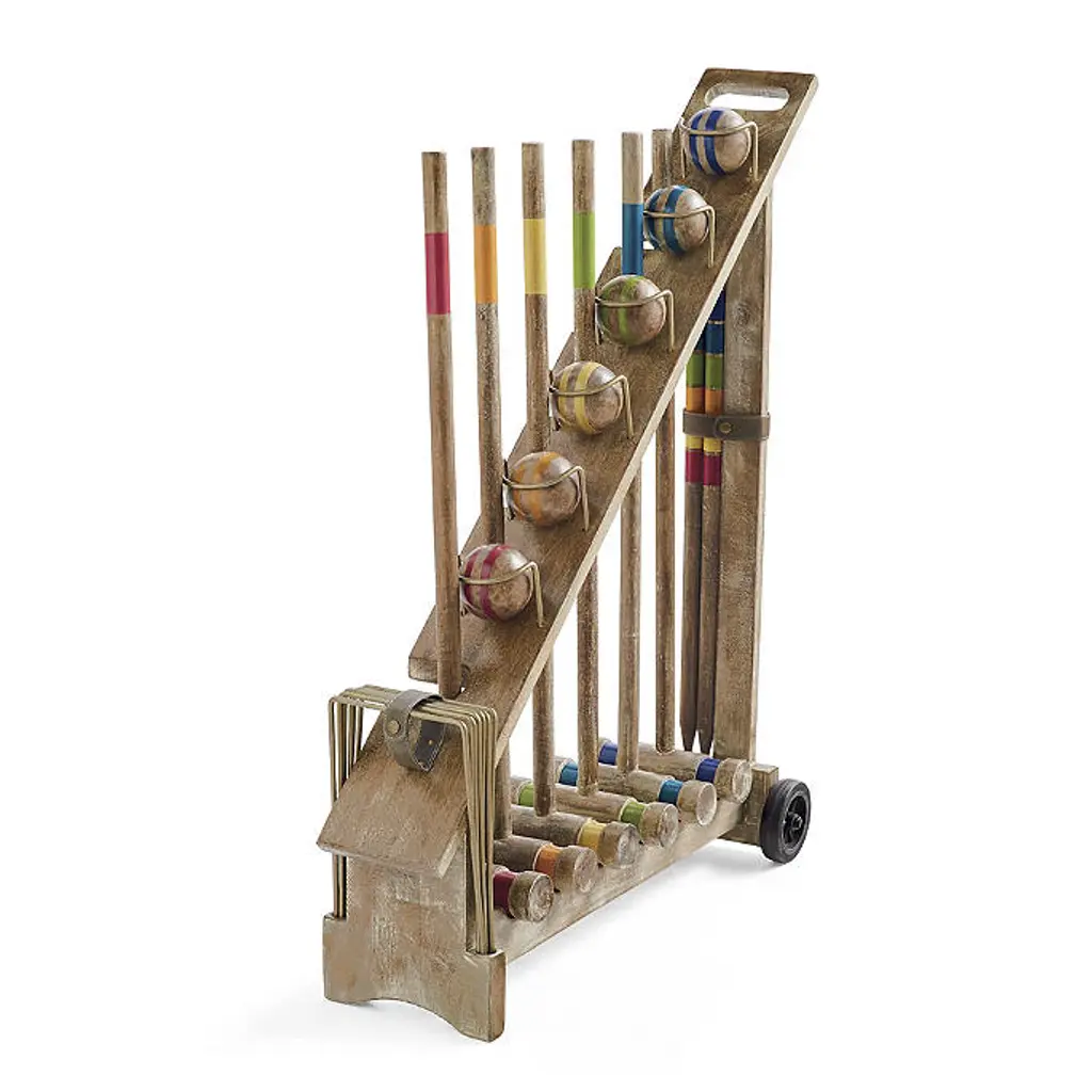 Bring the classic English lawn game to your backyard with Atticus Croquet Set. This set is made of high-quality components and a colorful pallet of croquet balls to ensure a great game. Set includes six solid wood mallets, six balls, metal wickets and stake Storage stand included Wipe clean with a soft cloth For outdoor use, but should be stored indoors Coordinates with Atticus Bocce Ball Set. A Frontgate exclusive. At Frontgate, our primary focus is quality. We guarantee that every product we sell will stand up to the supreme test – our customers' satisfaction. To learn more about our policies, visit our Shipping & Processing, Returns & Exchanges and Warranty & Price Guarantee pages.