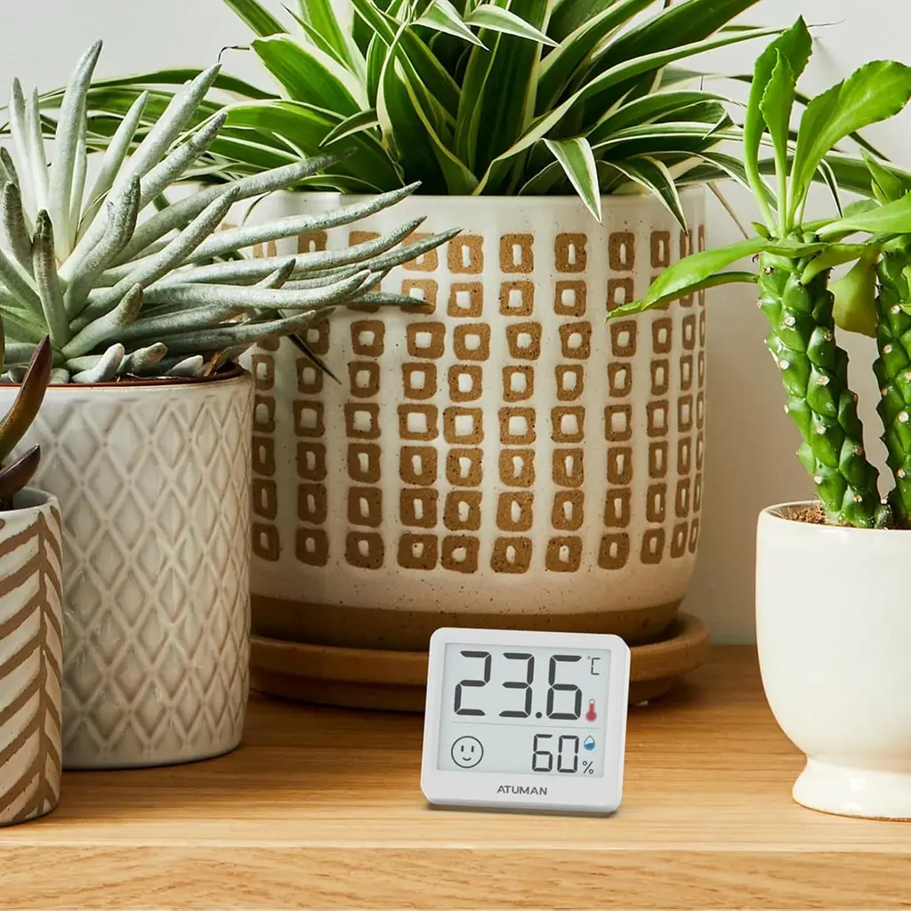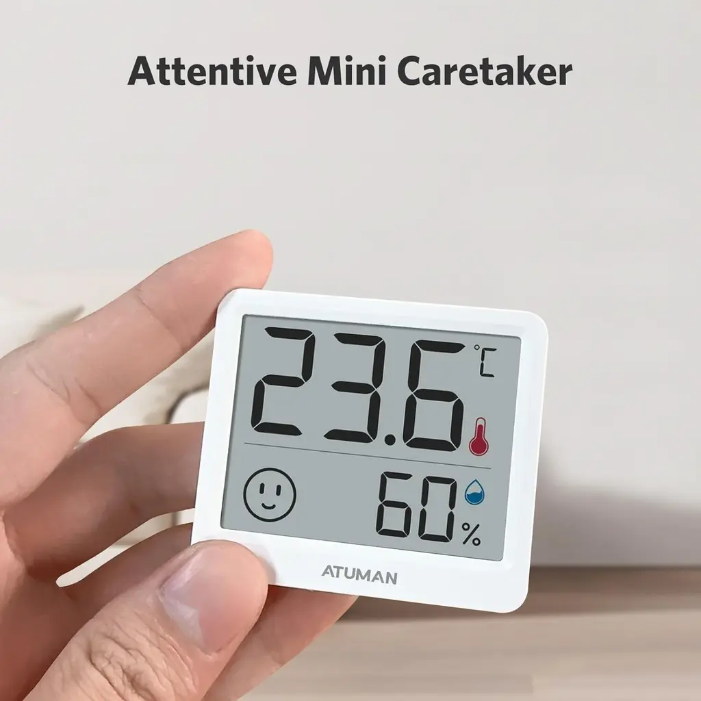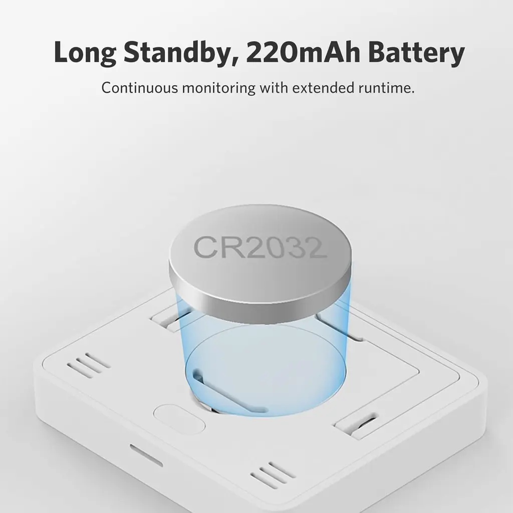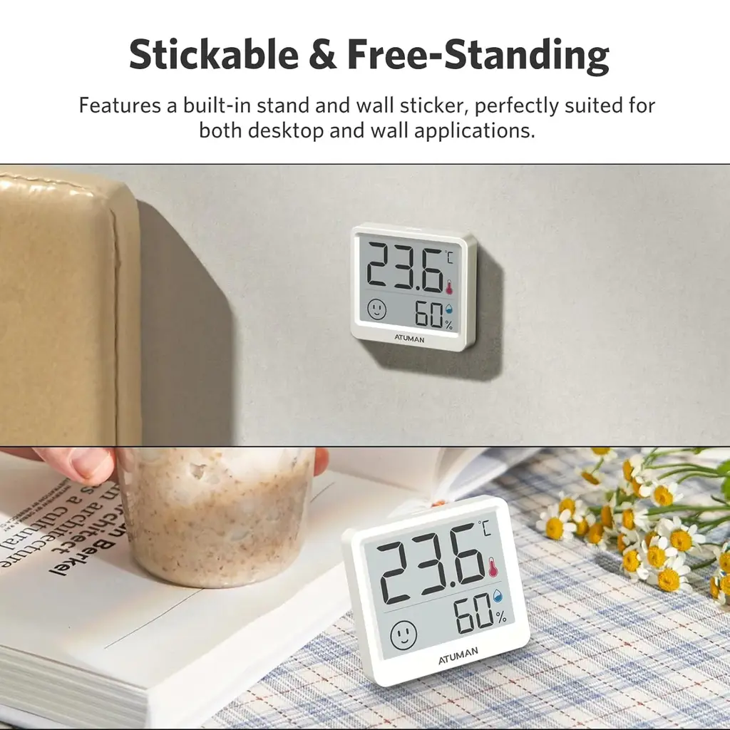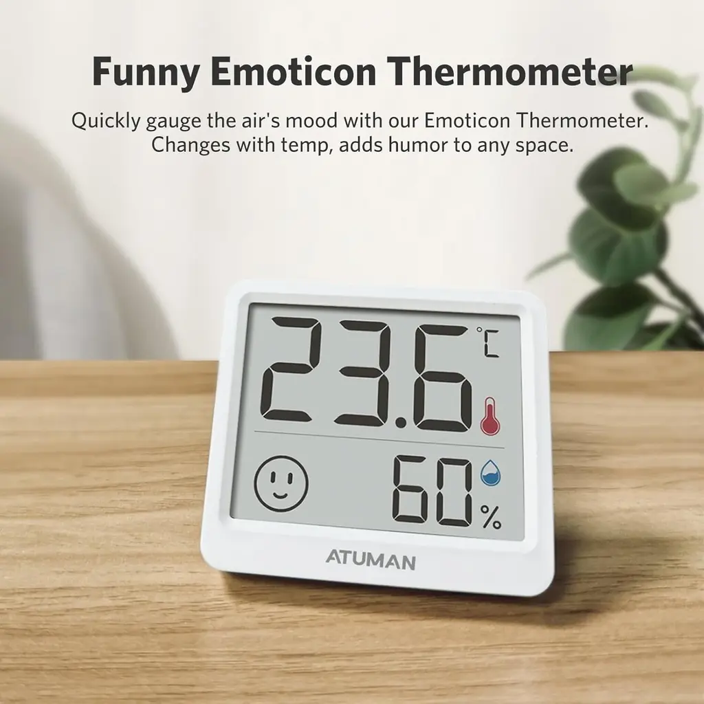 Lightweight white body, high screen occupies 2.5 inch LCD electronic screenBuilt in high sensitivity sensor, quick refresh, with air inlet on the back for multi-directional contact with ambient air; Creative emoticon pack design that showcases the comfort of the air environment through emoticons, full of fun; The back is equipped with a hidden retractable bracket that stands securely on the desktop, and can be adhered to walls, refrigerator doors, etc. with wall stickers; Built in 220mAh large button battery, low power consumption,