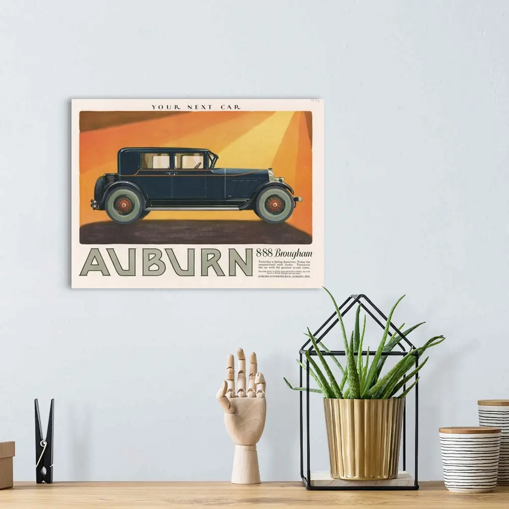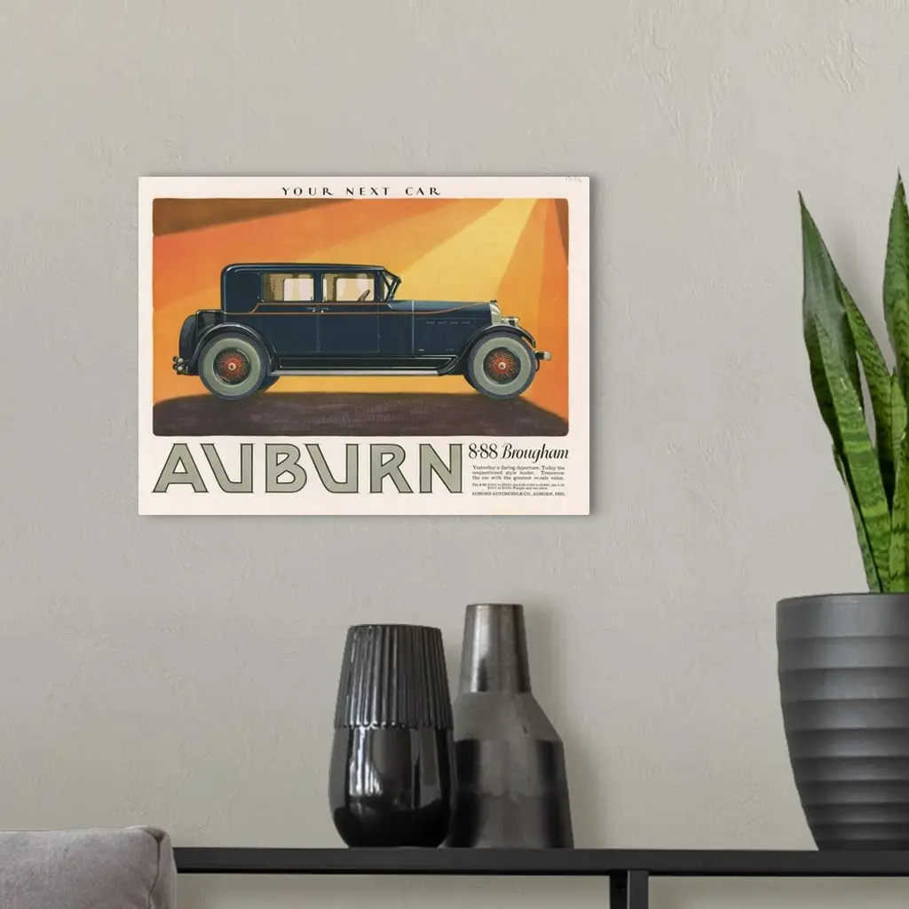 Auburn Automobile Advertisement wall art for home and office decor. Discover canvas art prints, photos, mural, big canvas art and framed wall art in GreatBigCanvas.com's varied collections.